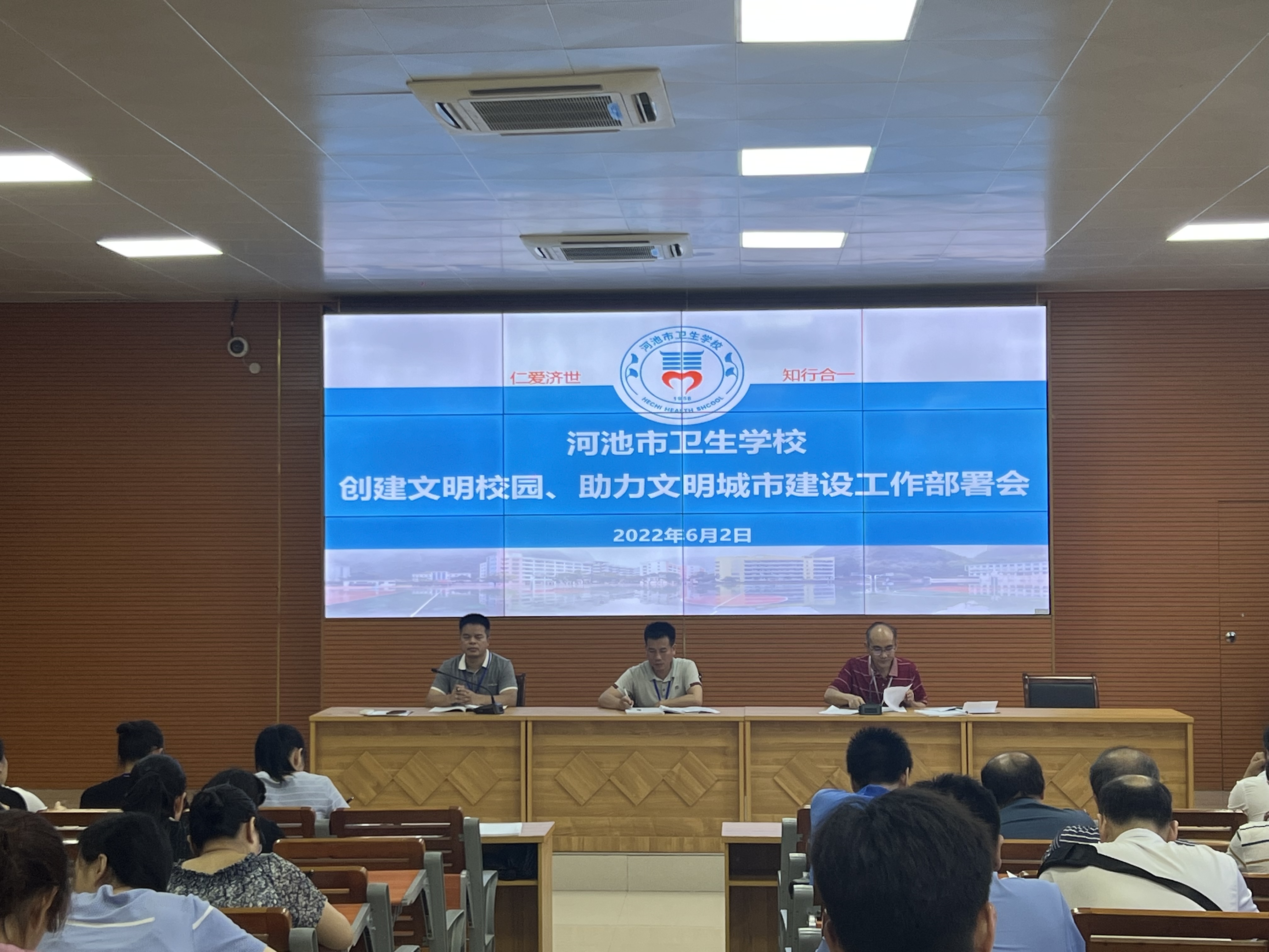 6月2日,我校召开创建文明校园 、助力文明城市建设工作部署会,全体教职工参加本次会议。