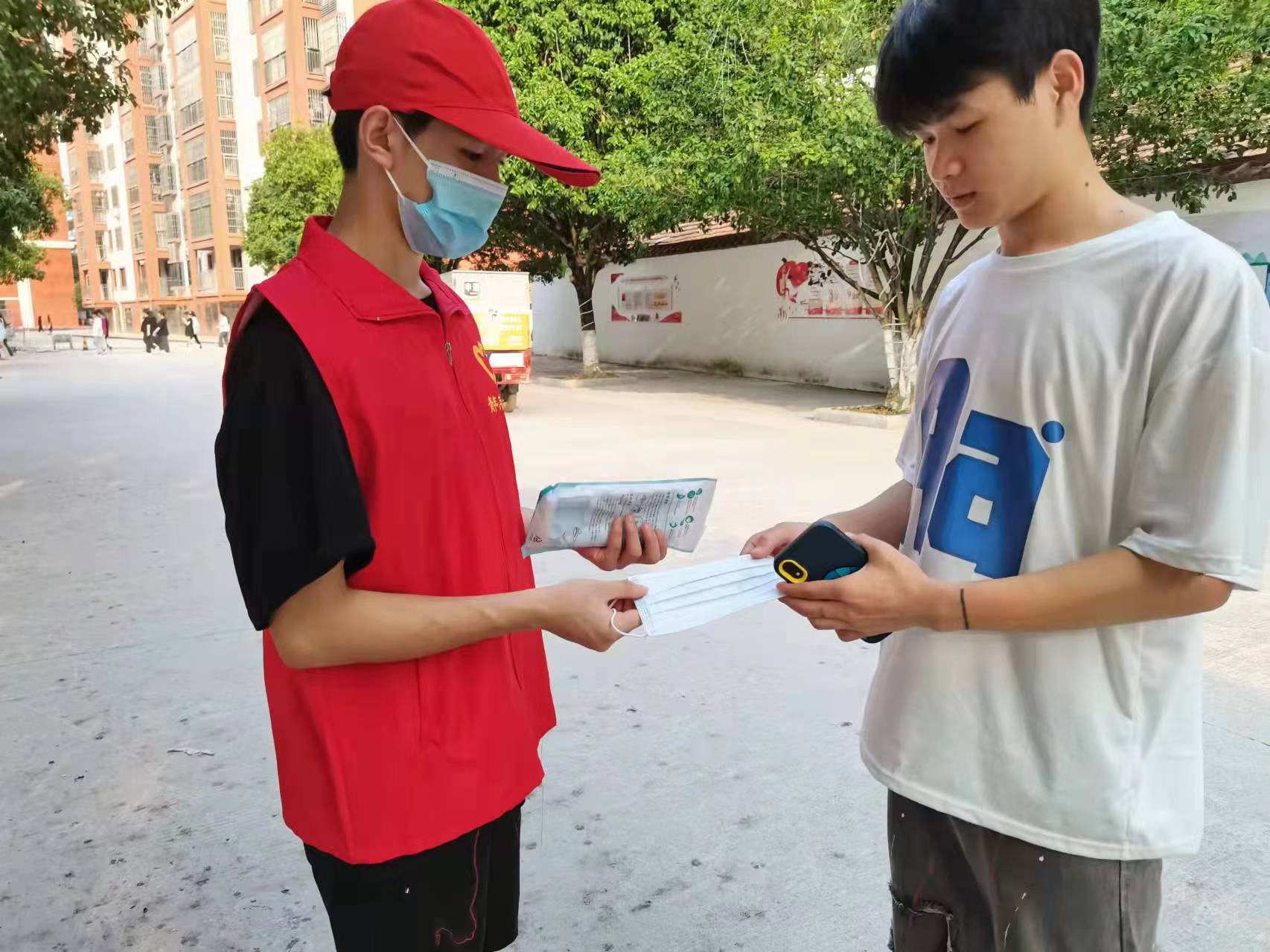 其次,开展“罩”顾你我,文明劝导志愿服务活动。志愿者提醒身边同学“口罩虽薄,能抗疾病;口罩虽小,展现文明。”教会同学全程规范科学佩戴口罩,引导同学们积极践行“口罩文明”,共同筑牢疫情防控安全屏障。