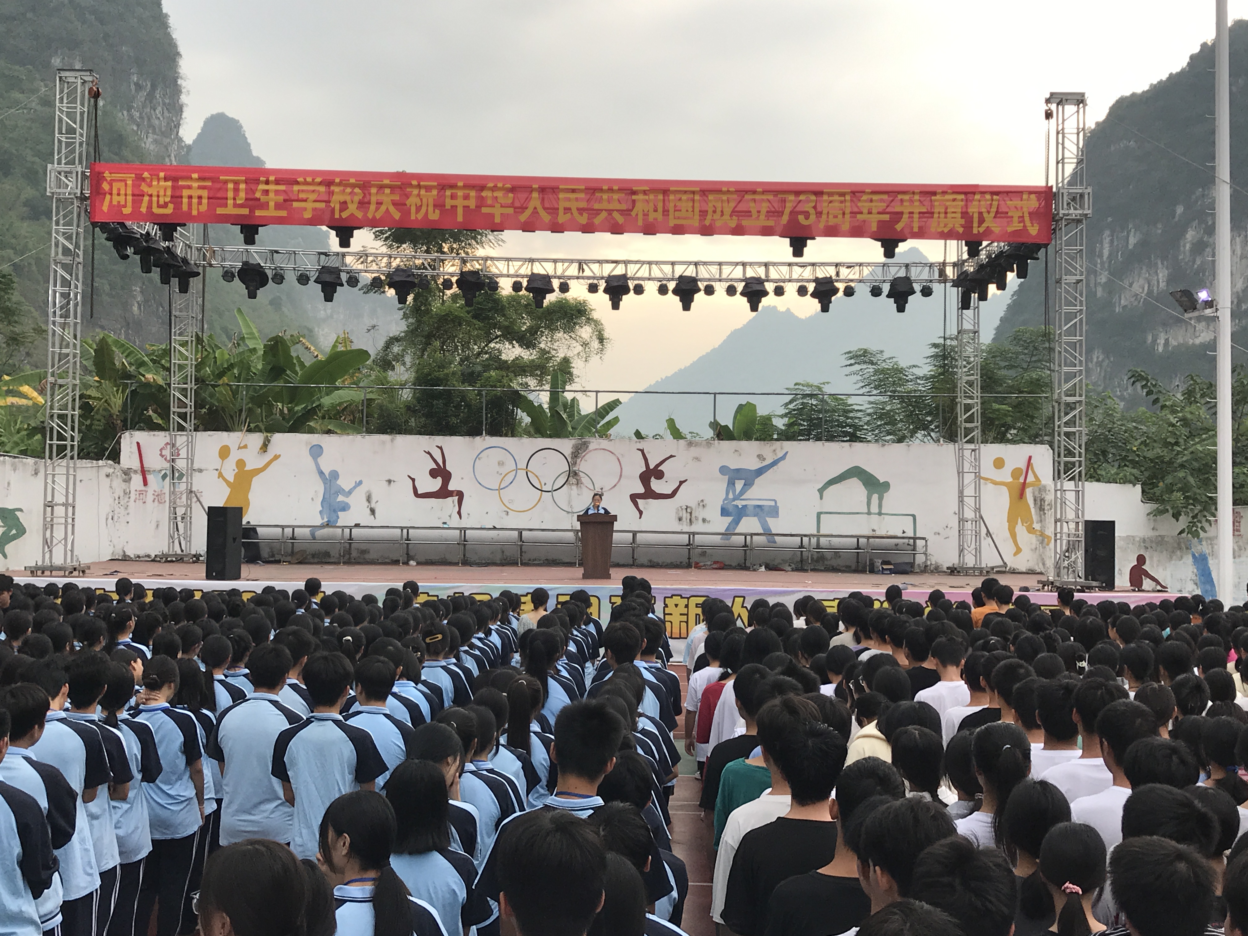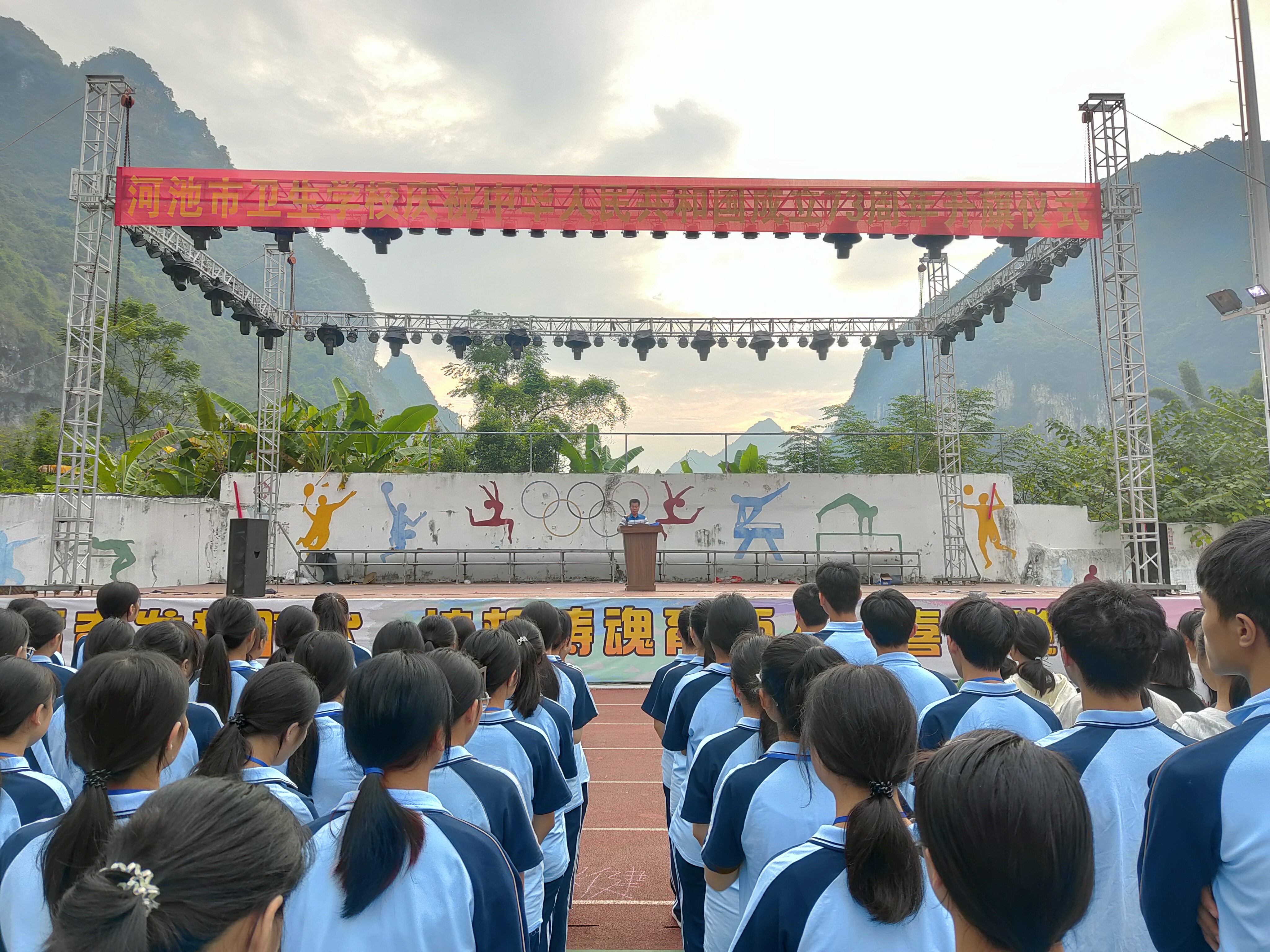 930日,河池市卫生学校在运动场隆重举行庆祝中华人民共和国成立73周年升国旗仪式。