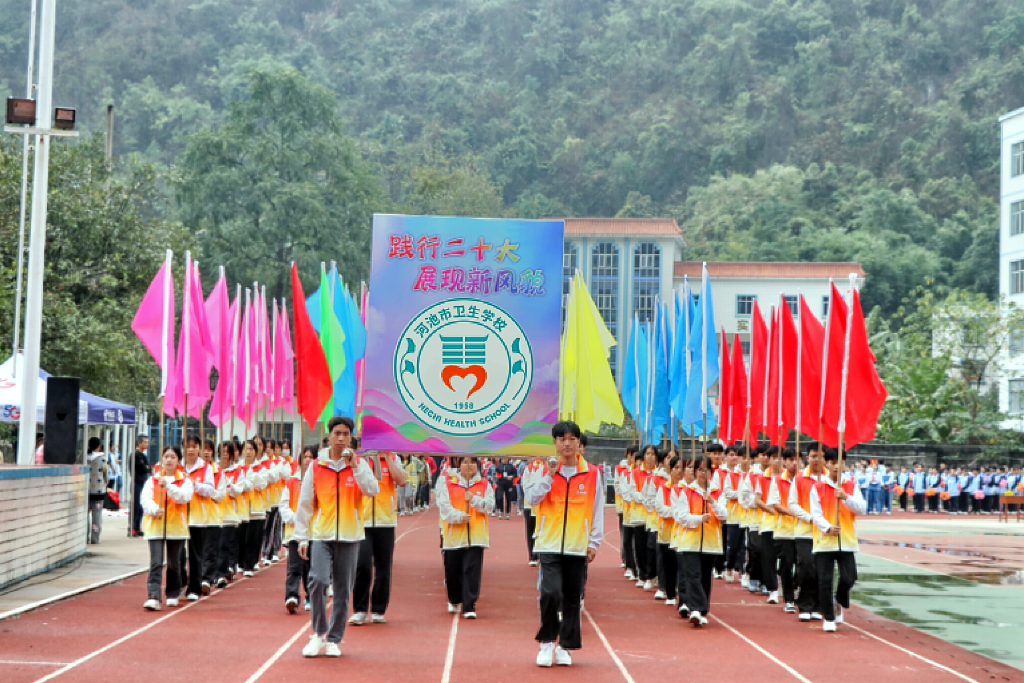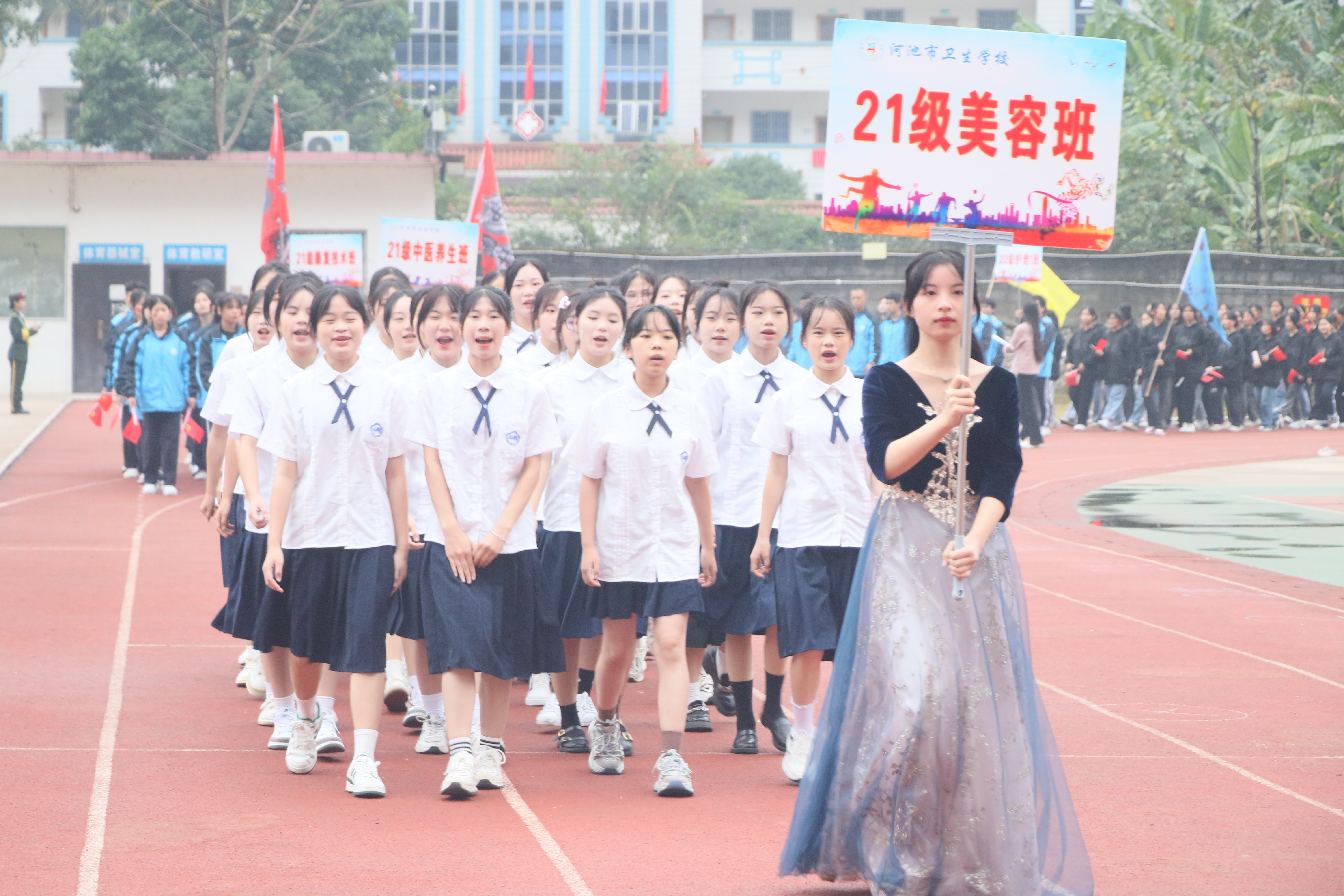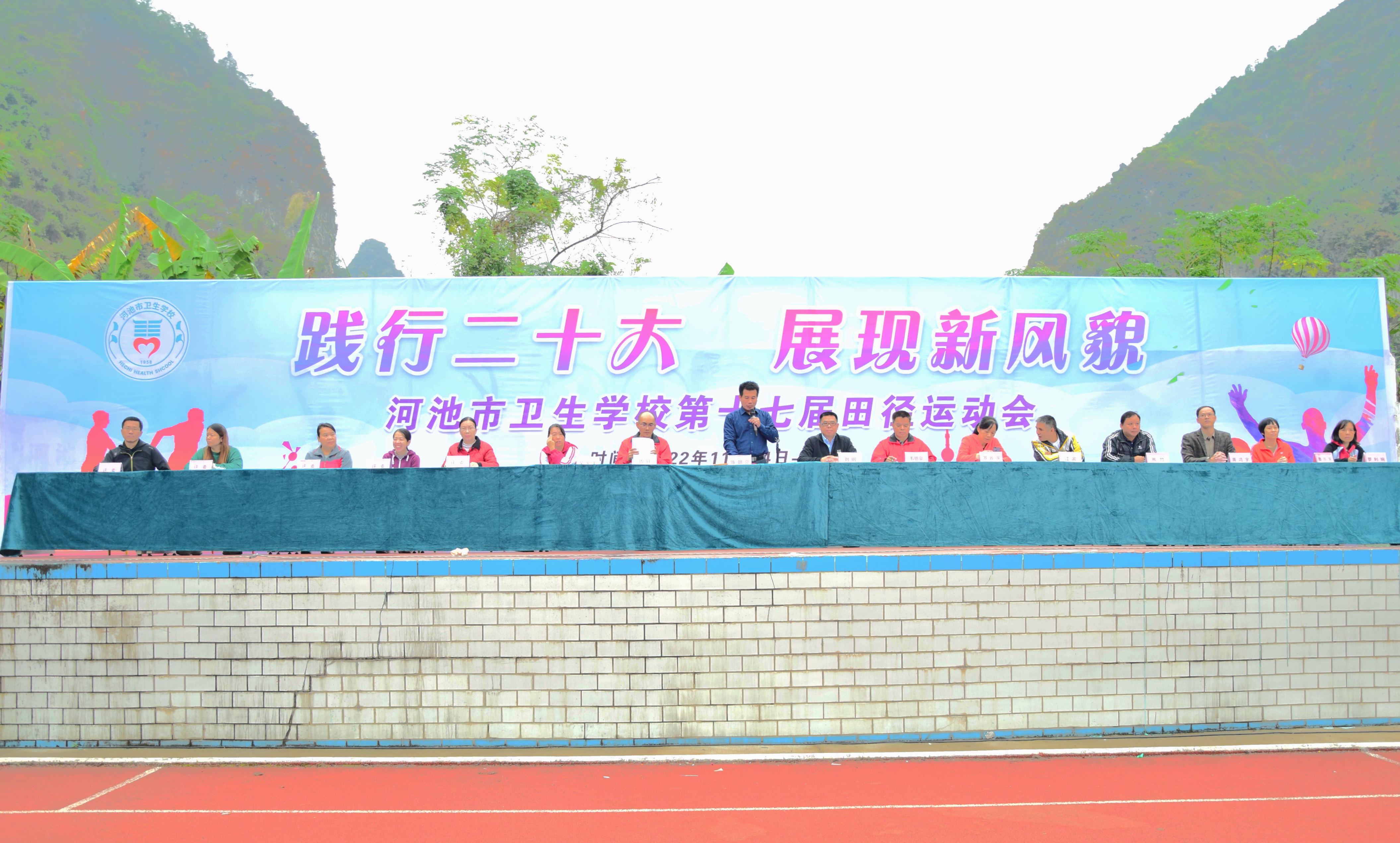 冬日燃激情,赛场展风采。2022年11月24日,河池市卫生学校举办第十七届田径运动会,全校师生齐聚于此,一片欢腾。伴随着激昂的《运动员进行曲》,运动会正式拉开序幕。