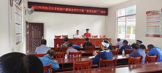 7月8日,河池卫校到南丹县六寨镇宣明村开展“普通话推广”文化“三下乡”活动,这次推广对象是宣明村的村民。