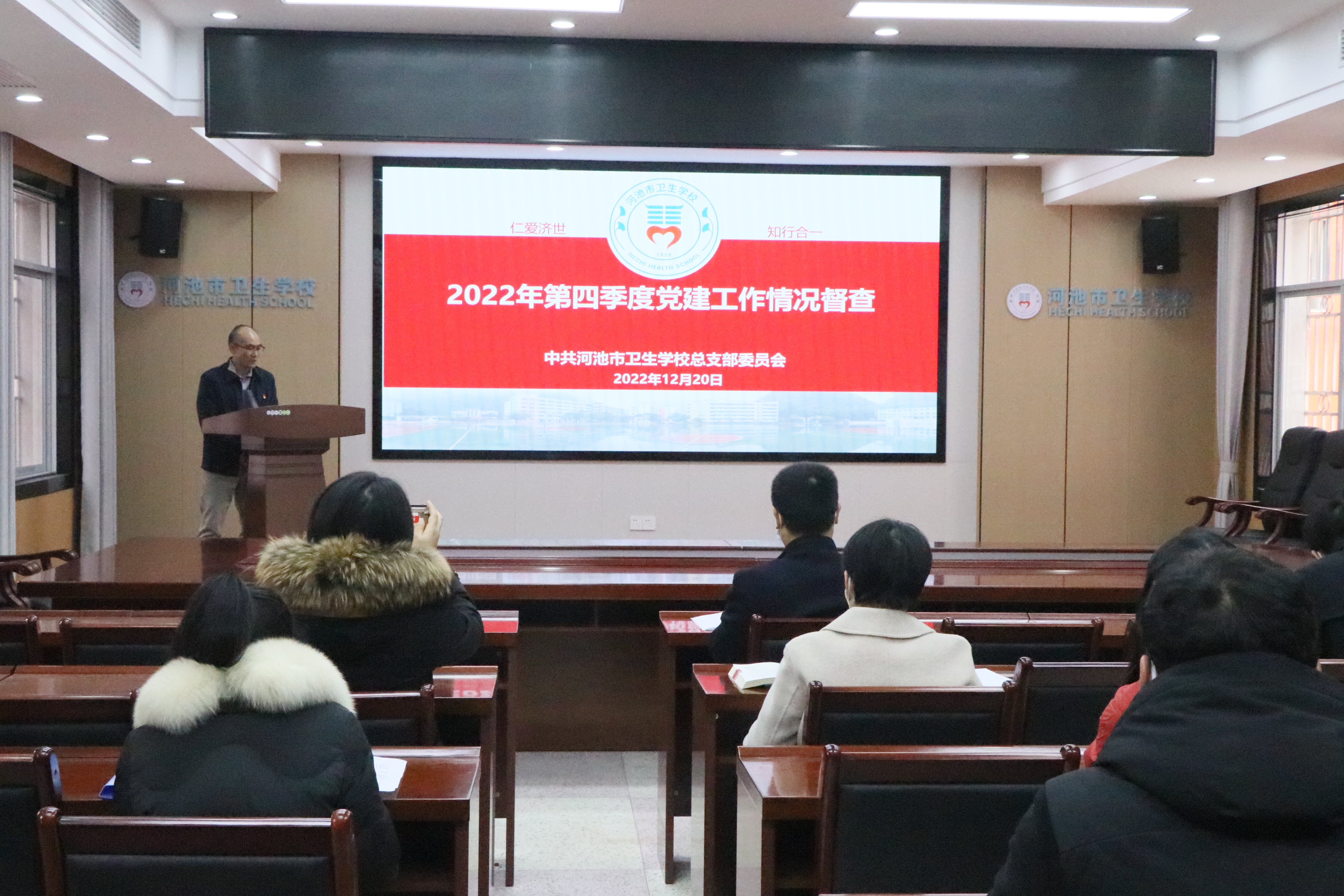 为全面了解和掌握各支部党建工作落实情况,进一步推动河池市卫生学校基层党建“五基地三化”工作的开展,12月20日上午,河池市卫生学校党总支对行政党支部、学工党支部、临床党支部、基础党支部和退休党支部5个支部第四季度党建工作开展情况进行专项督查。