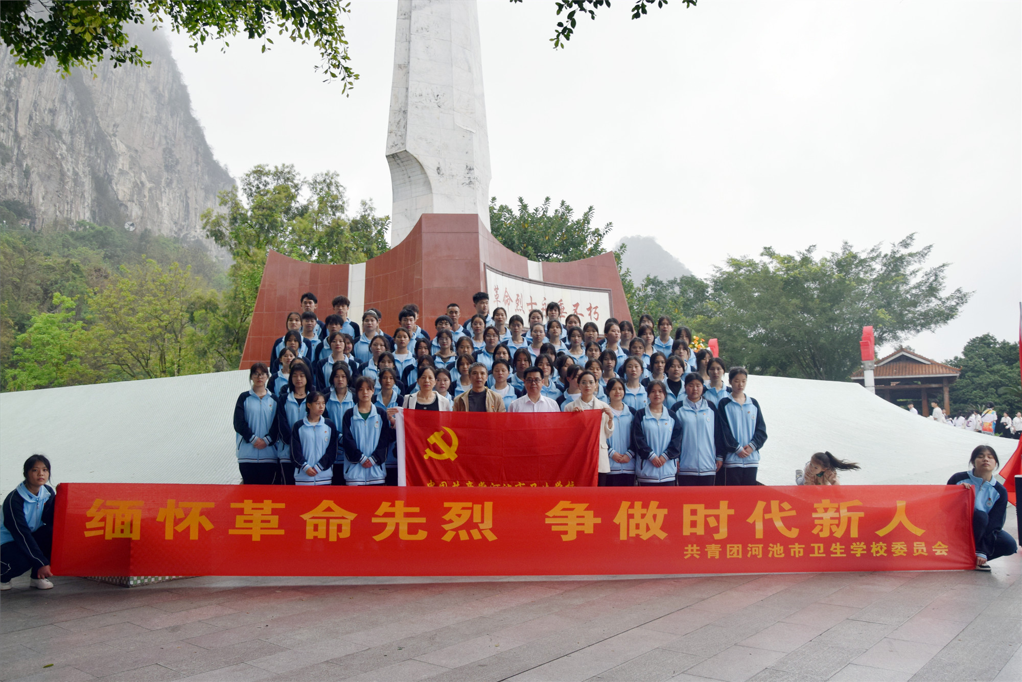 4月2日上午,河池市卫生学校100名师生代表到金城江革命烈士纪念园开展“缅怀革命先烈,争做时代新人”清明祭英烈活动。