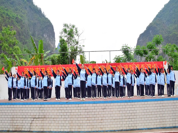 在4月17日的国旗下才艺展示活动中,河池市卫生学校获得2022年度中等职业教育国家奖学金、自治区人民政府中等职业教育奖学金、学校奖学金的73名学生进行才艺展示。