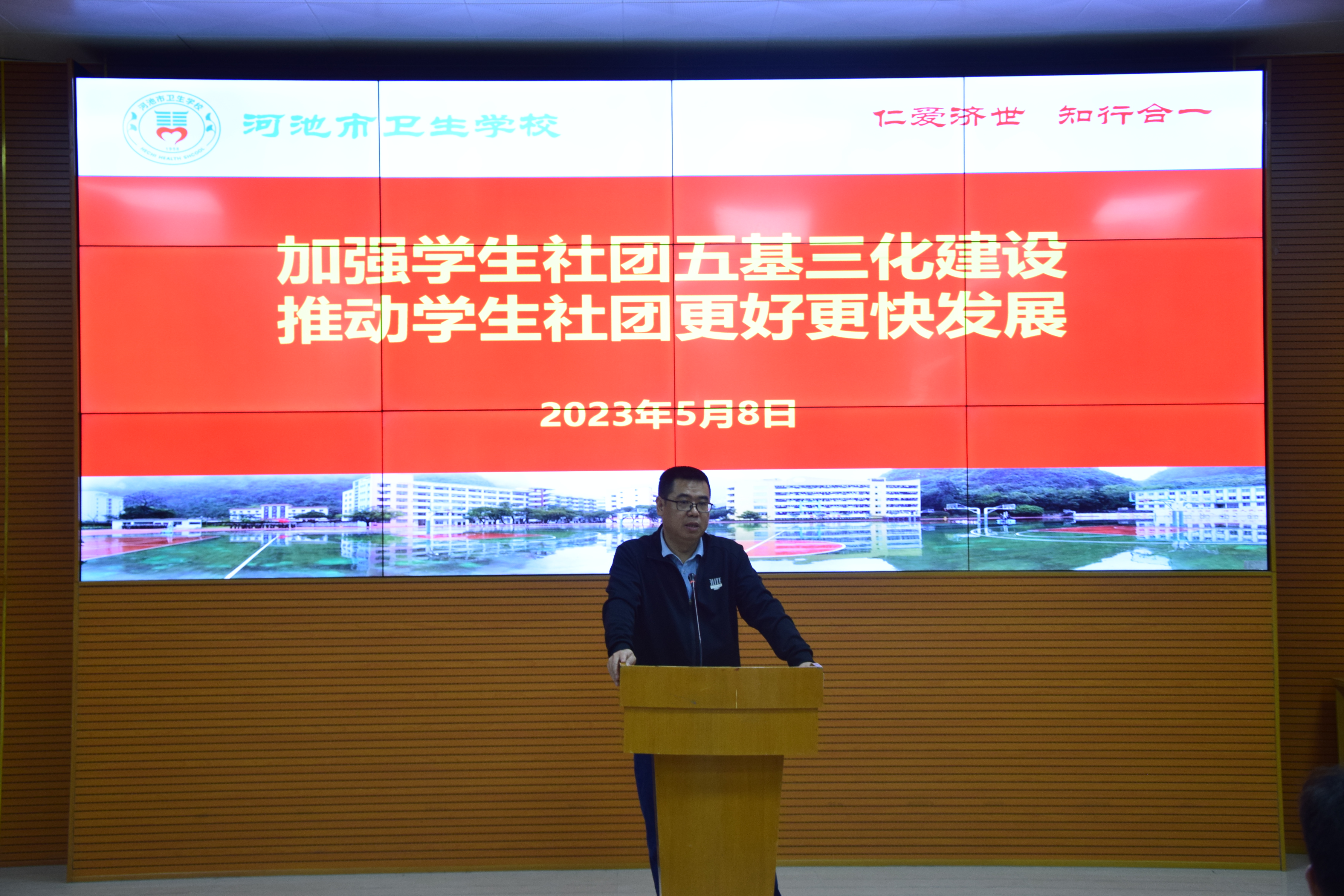 为树立典型,表彰先进,进一步促进学生社团的发展和建设,5月8日晚,河池市卫生学校2022年度学生社团总结表彰大会在第四阶梯教室举行,学校党总支纪检委员、副校长刘钢,校团委委员、各学生社团指导老师、校团委干事以及各学生社团代表共150余人参加会议。