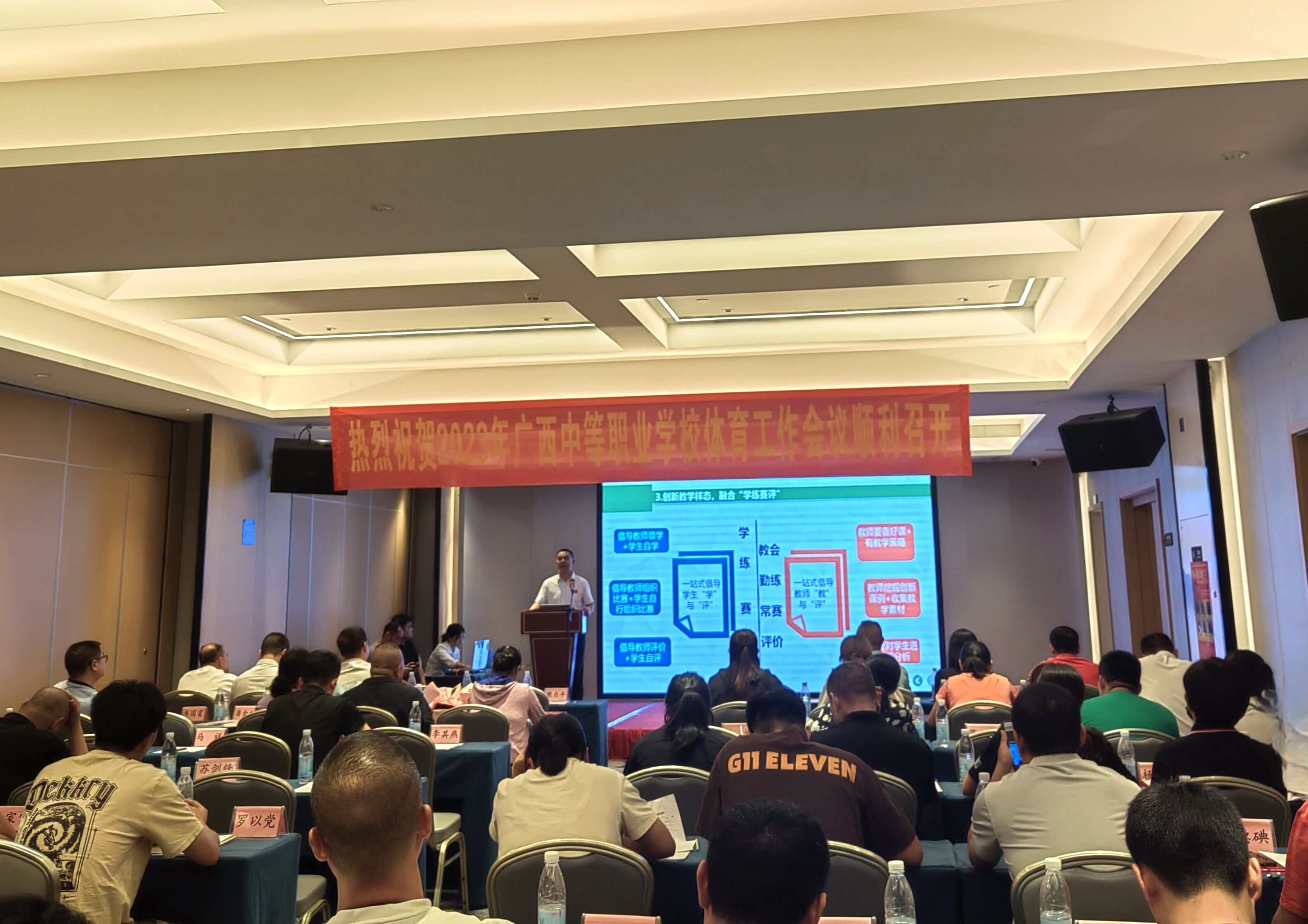 5月27日,广西学校体育卫生艺术学会中职分会2023年工作会议在南宁召开,参加此次会议的人员有全区各中等职业学校分管校领导、体育部门主要负责人及体育骨干教师共计120余人,我校体育教研室主任韦泽榜参会,并被聘任为广西学校体育卫生艺术学会中职体育分会常务理事兼体育竞赛部副主任。