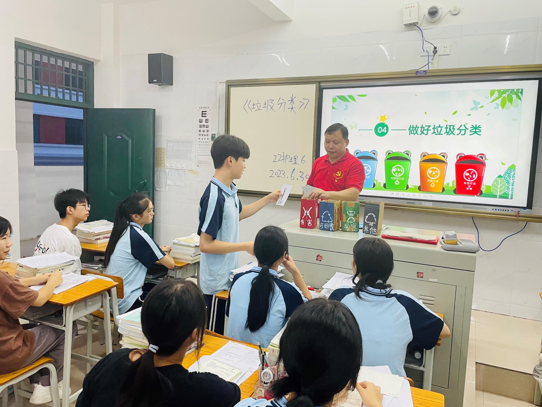 垃圾分类从我做起,洁净校园因你美丽。为进一步增强学生保护环境的责任感,引导学生树立垃圾分类的意识,提升学生垃圾分类的能力,营造绿色环保的校园环境,6月30日,基础党支部在22护理6班开展了“垃圾分类,从我做起”为主题的宣传教育活动。