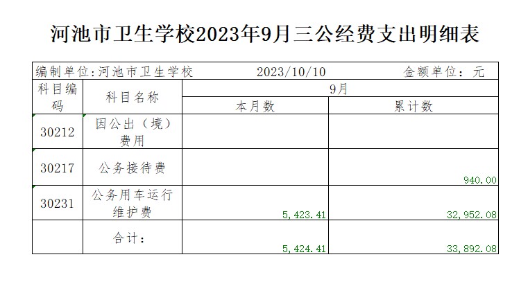 河池市卫生学校2023年9月三公经费支出明细表