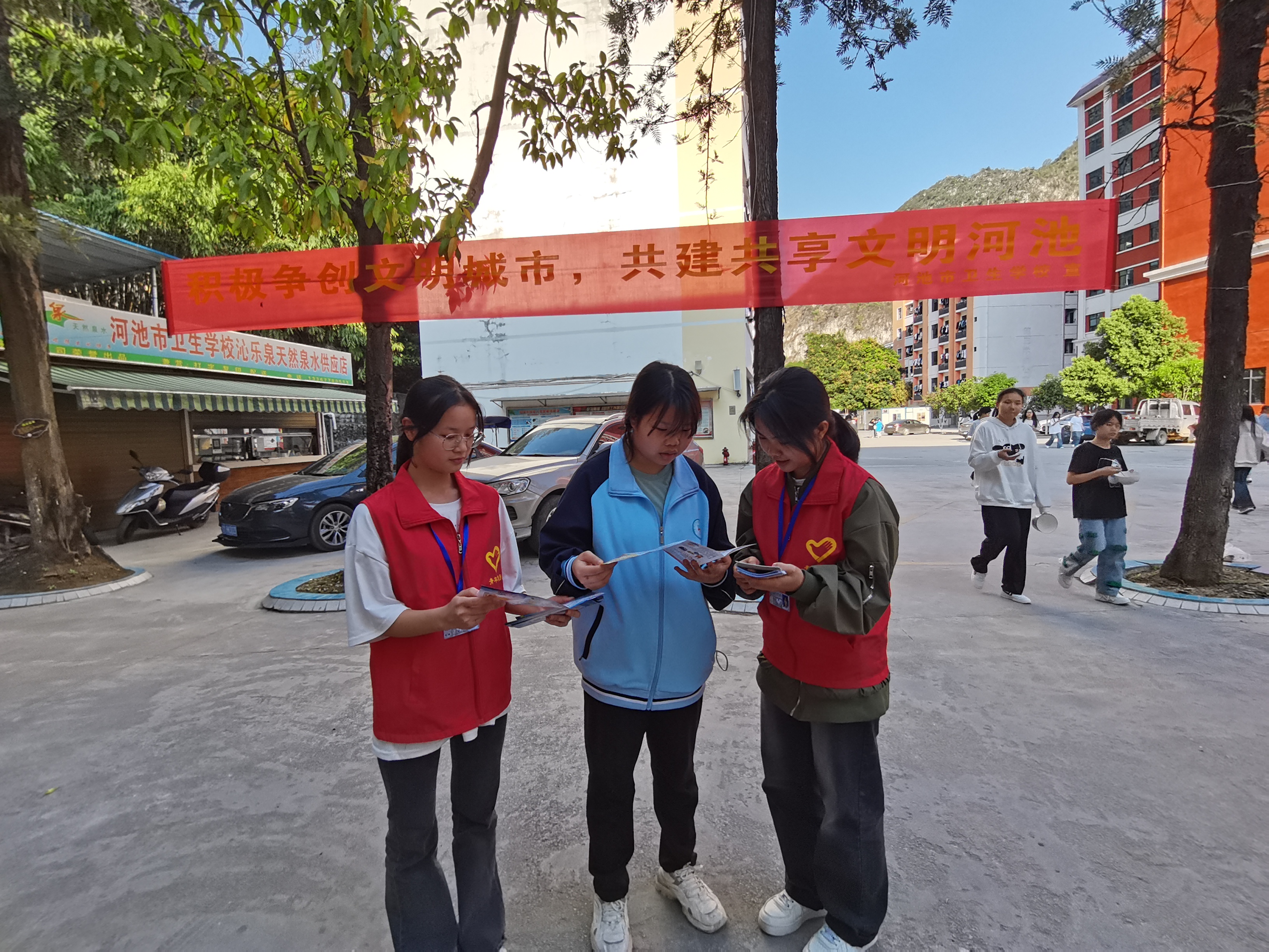 河池市卫生学校志愿者协会组织开展 “防范电信诈骗宣传 助力文明城市创建”活动
