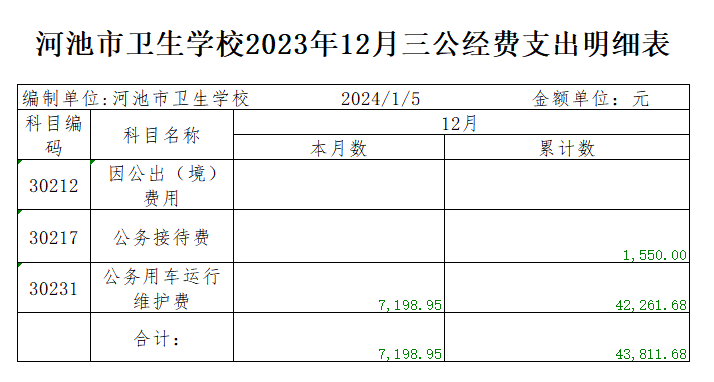【下一篇】:河池市卫生学校2023年11月三公经费支出明细表