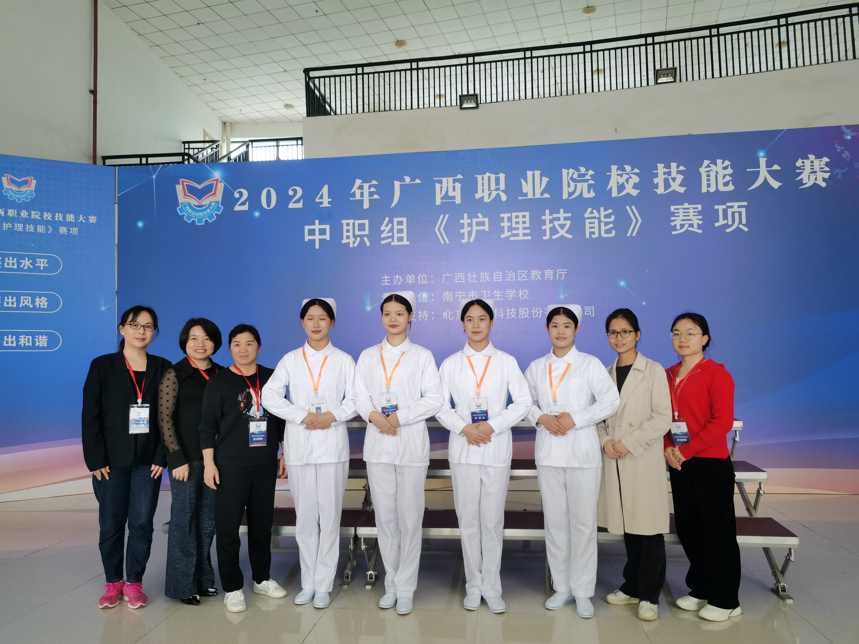 近日,备受瞩目的2024年广西职业院校技能大赛中职组比赛圆满落下帷幕。此次大赛,我校选手凭借出色的个人表现和默契的团队精神,在康复技术、护理技能、母婴照护三个赛项中均取得了优异的成绩,共获二等奖4项、三等奖1项。