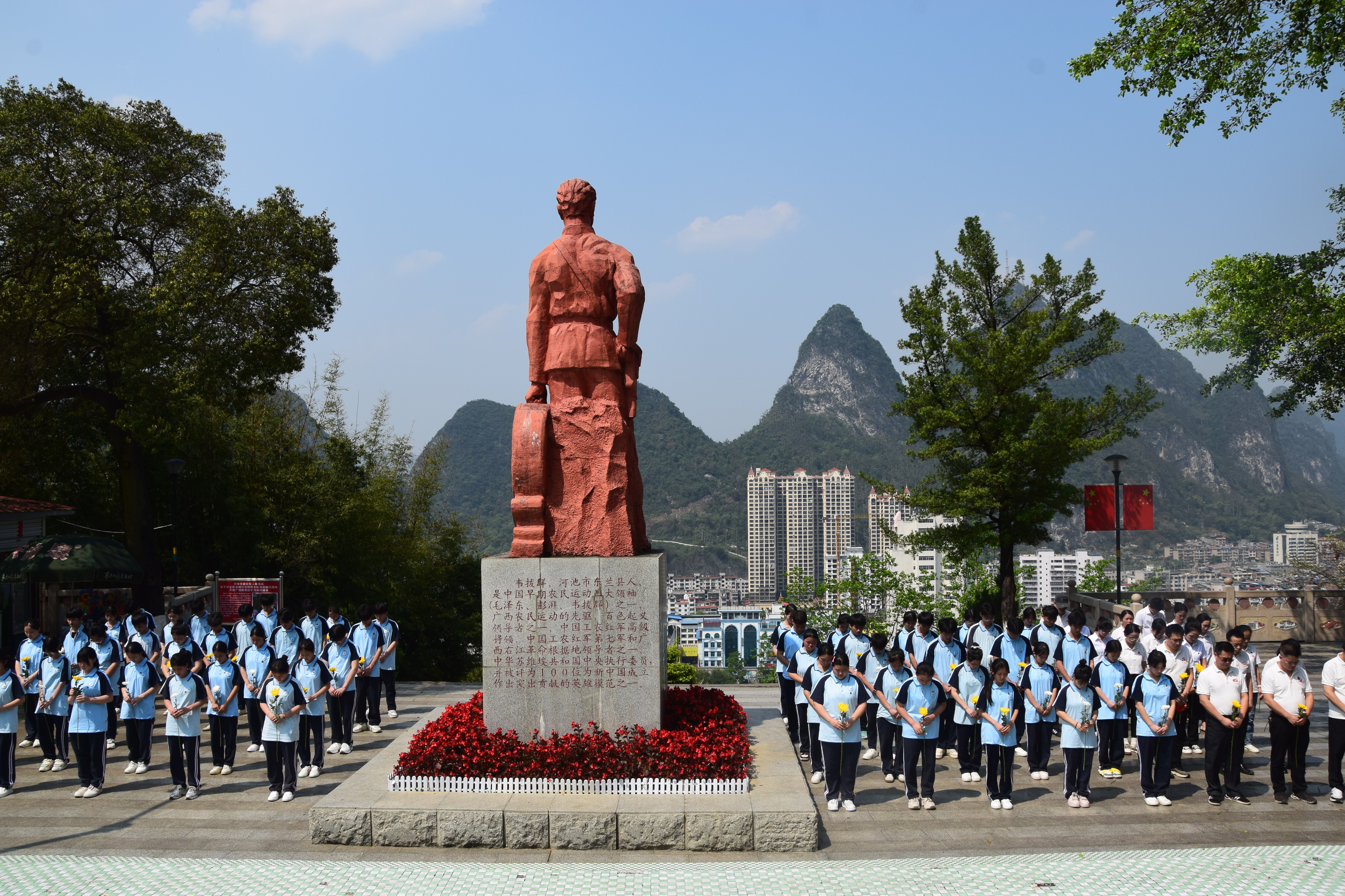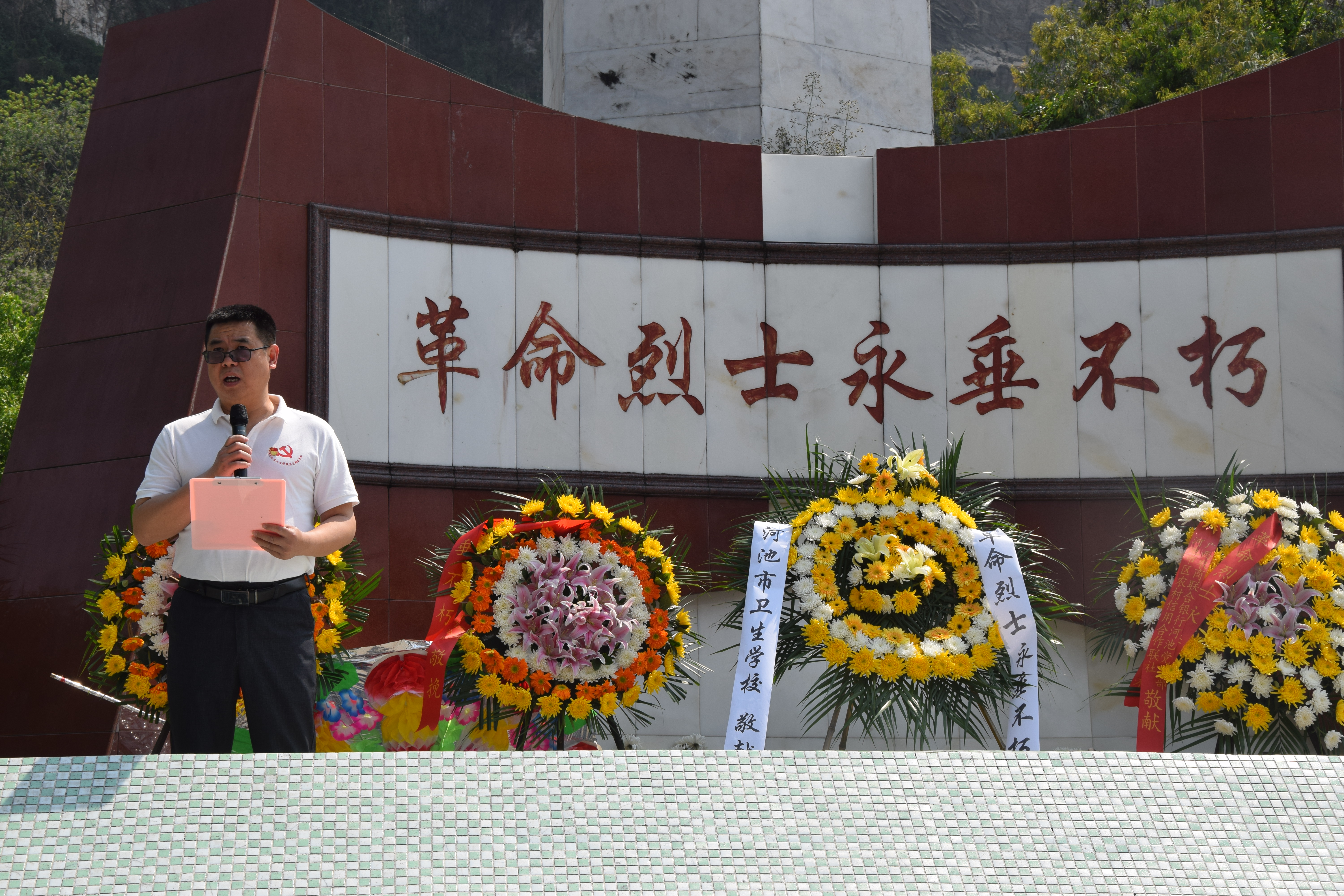 4月2日下午,清明节来临之际,河池市卫生学校学工支部、行政支部、临床支部、校团委组织支部党员和青年团员80余人,前往金城江革命烈士园开展“清明祭英烈 鲜花献忠魂”党团主题教育活动。