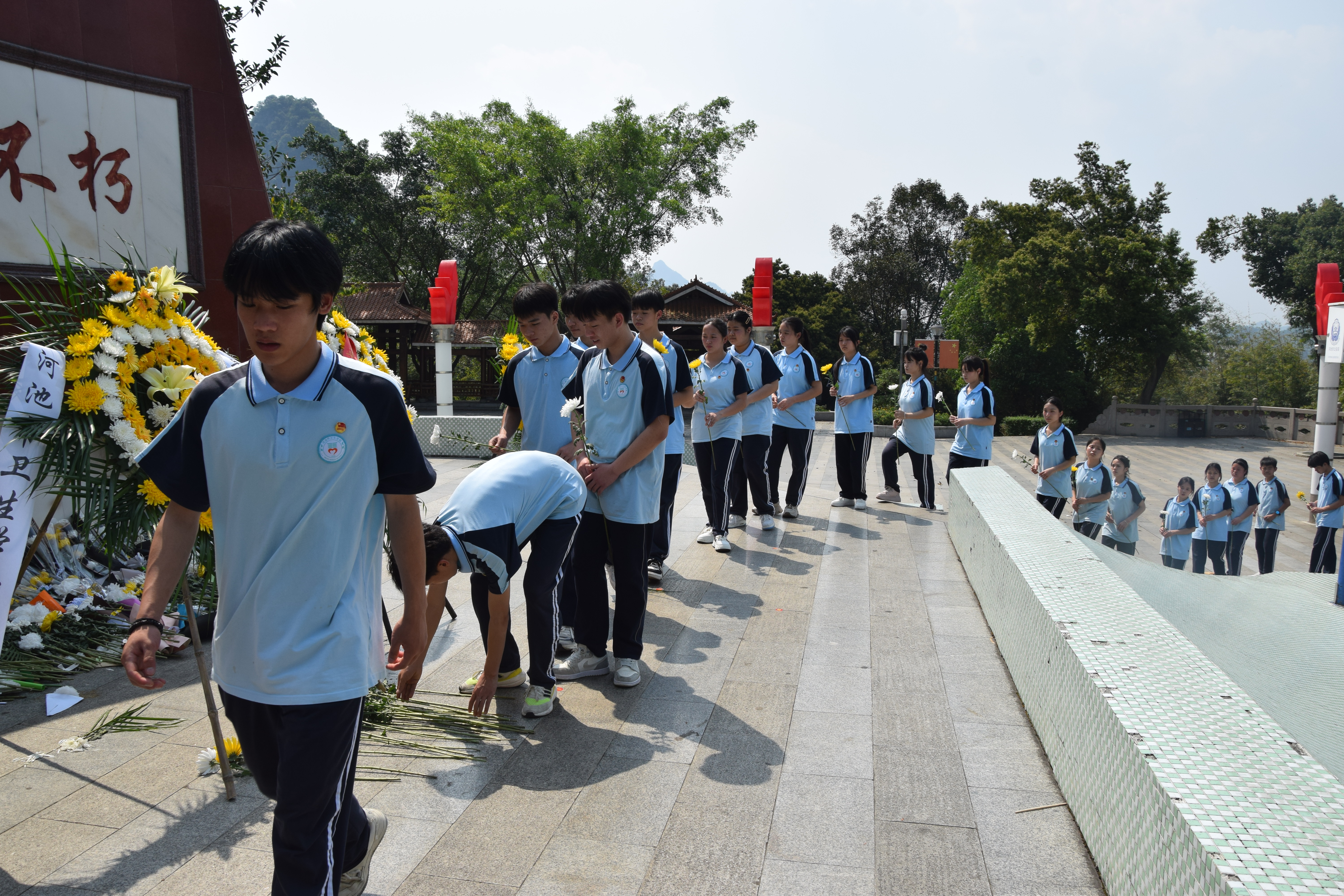 师生们列队向革命先烈敬献鲜花