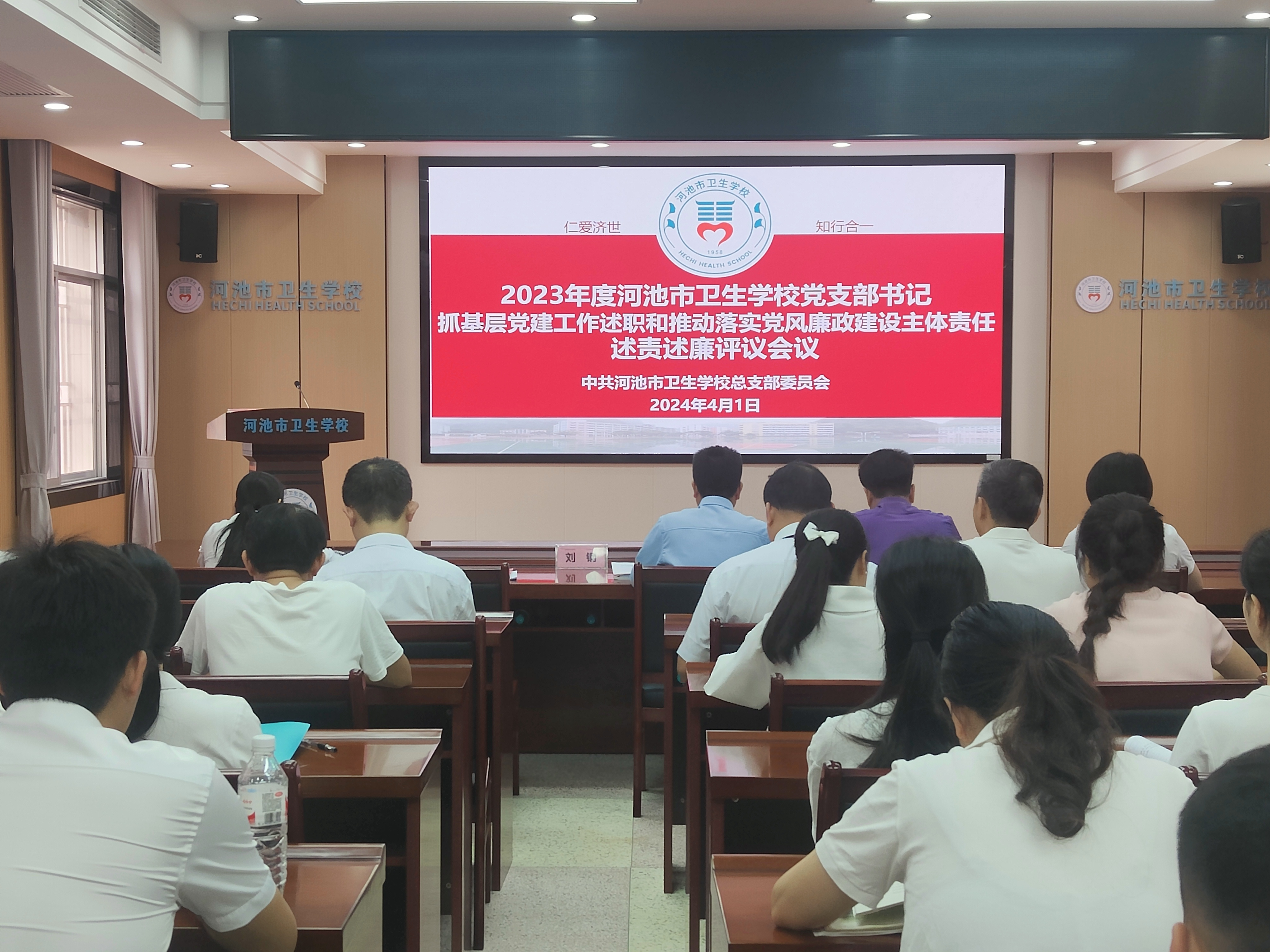 41日,河池市卫生学校召开2023年度党支部书记抓基层党建工作述职推动落实党风廉政建设主体责任述责述廉评议会议