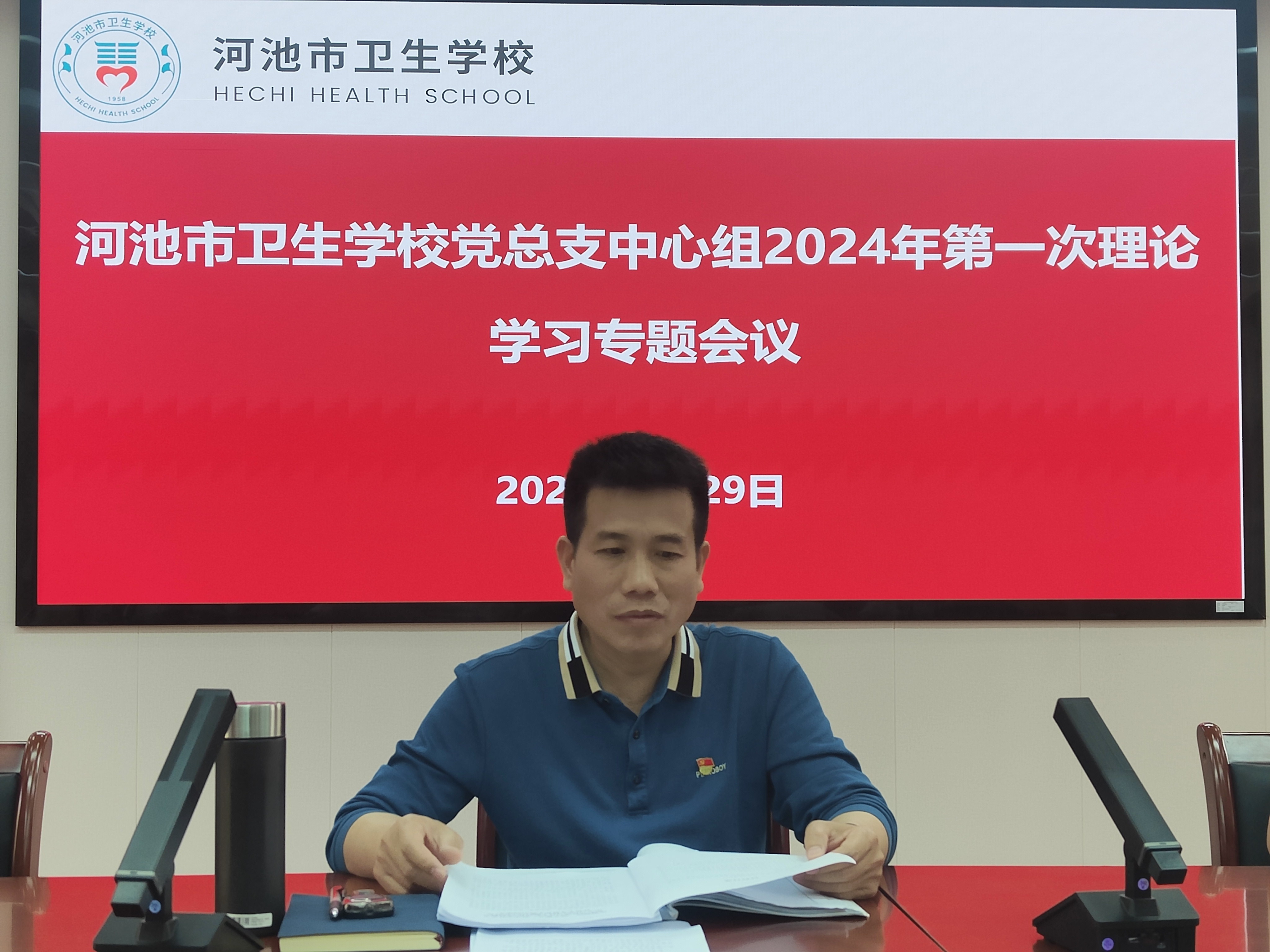 3月27日下午,我校召开党总支理论中心组2024年第一次理论学习会议,学校党总支成员、各科室负责人、各党支部书记参会。