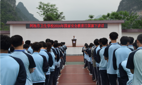 2024年4月15日,是第9个全民国家安全教育日,上午8点,河池市卫生学校于学校运动场开展“国家安全教育日”国旗下讲话活动。
