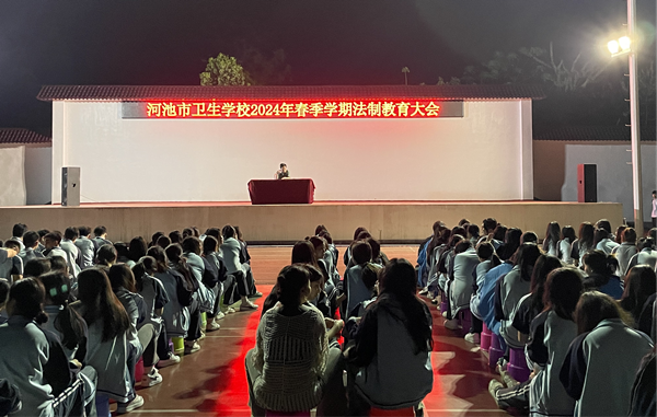 为进一步增强学生的法律意识和法治观念,确保校园平安和谐,3月25日晚7点30分,河池市卫生学校于田径运动场召开2024年春季学期法制教育大会。学校法律顾问韦朗舒律师应邀作题为“拒绝暴力 珍惜生命 不负韶华 不负未来”的法制教育报告。学校全体师生3000多人参加了此次大会,大会由学生科副科长张乐平主持。