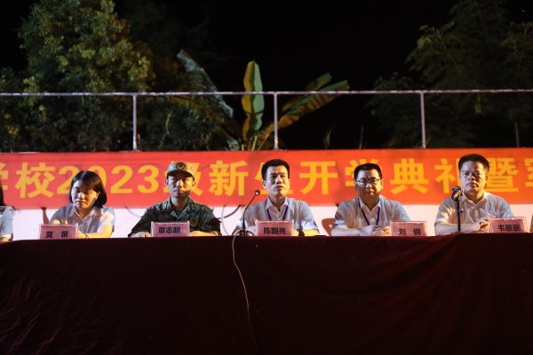 9月5日晚上7点30分,我校在田径运动场举行2023级新生开学典礼暨军训动员大会。校长陈朝亮,副校长刘钢、莫苗,各职能部门负责人,军训教官,新生班主任和202级全体新生参加大会。学校办公室主任韦恩豪主持会议。