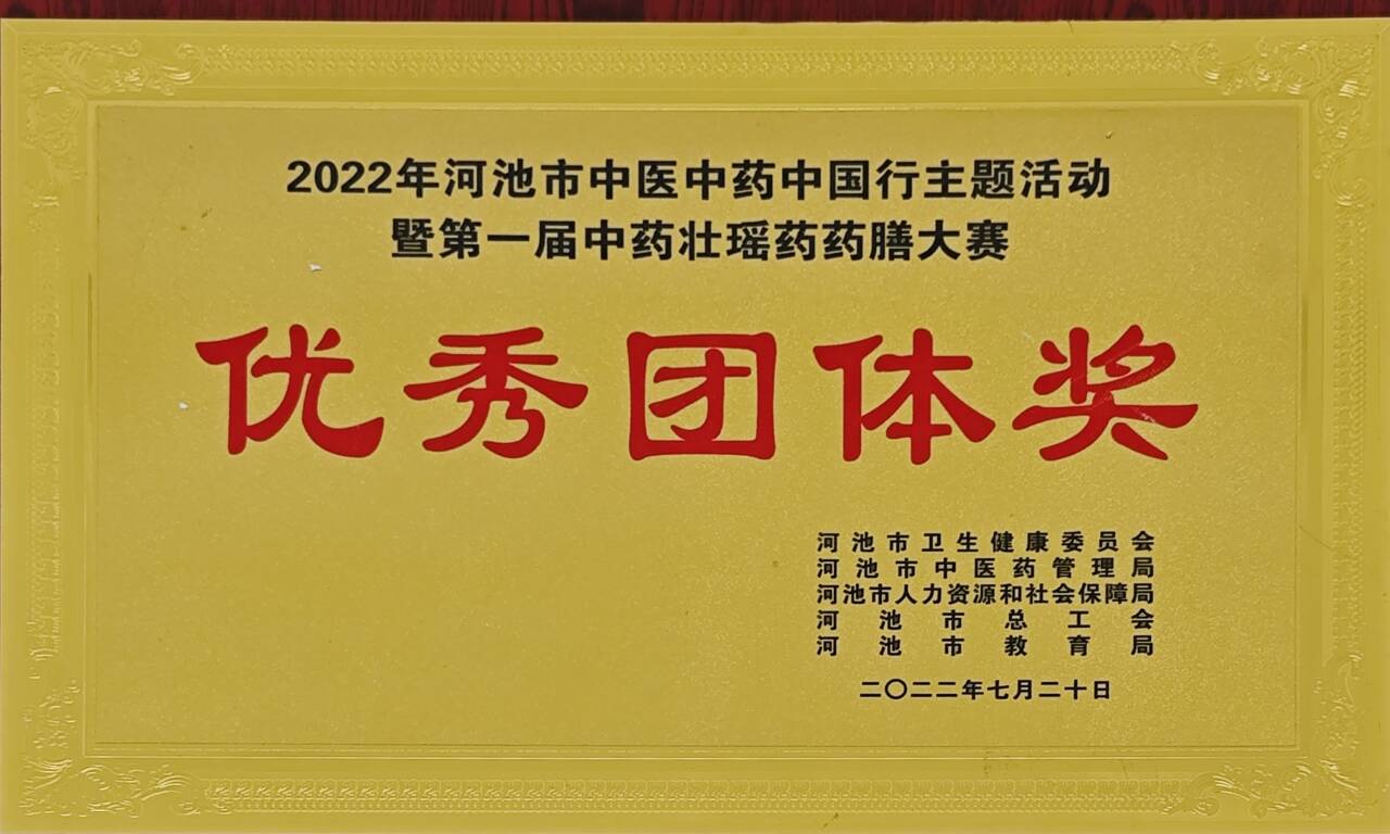 2022年河池市中医中药中国行主题活动暨第一届中药壮瑶药药膳大赛优秀团体奖