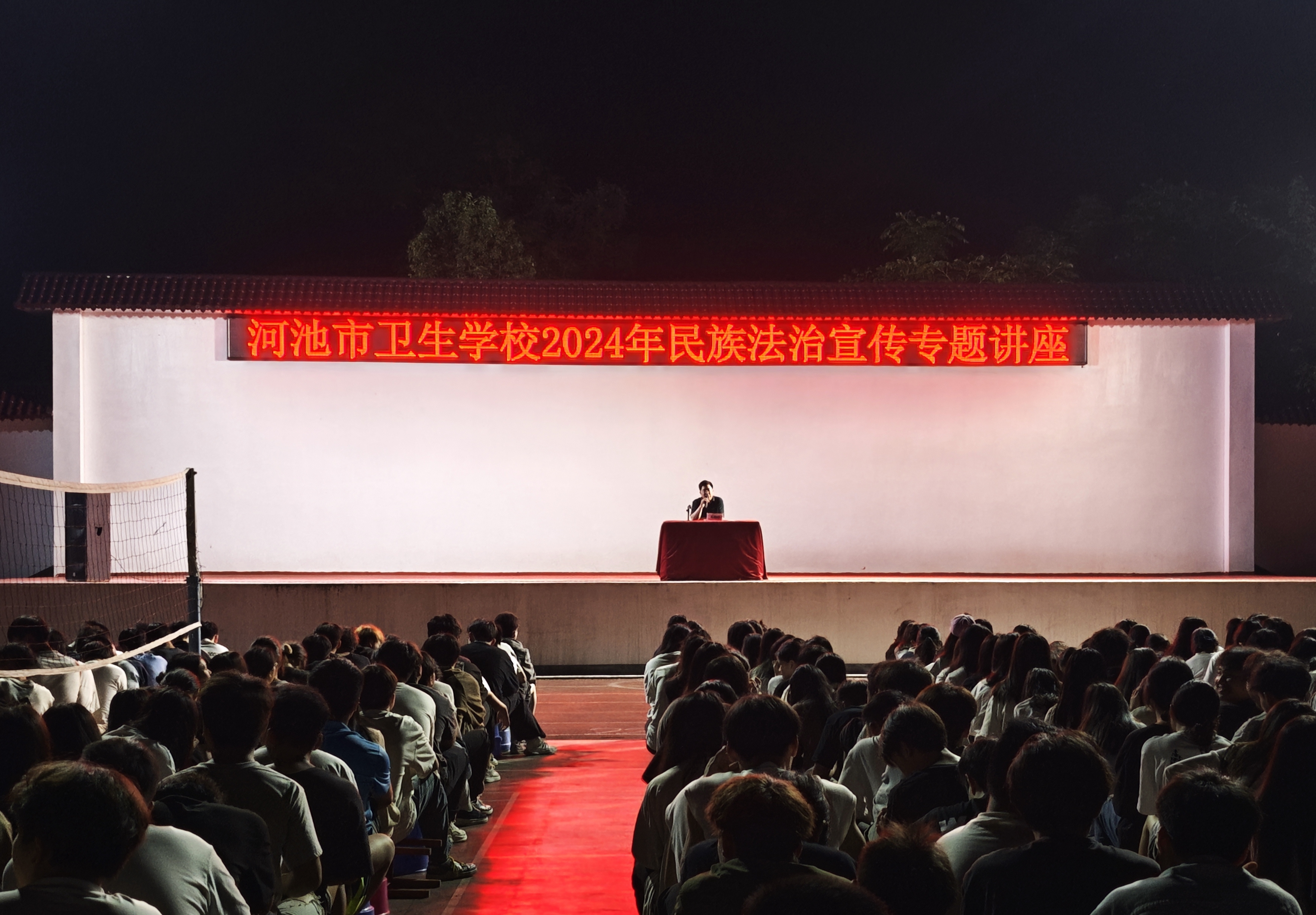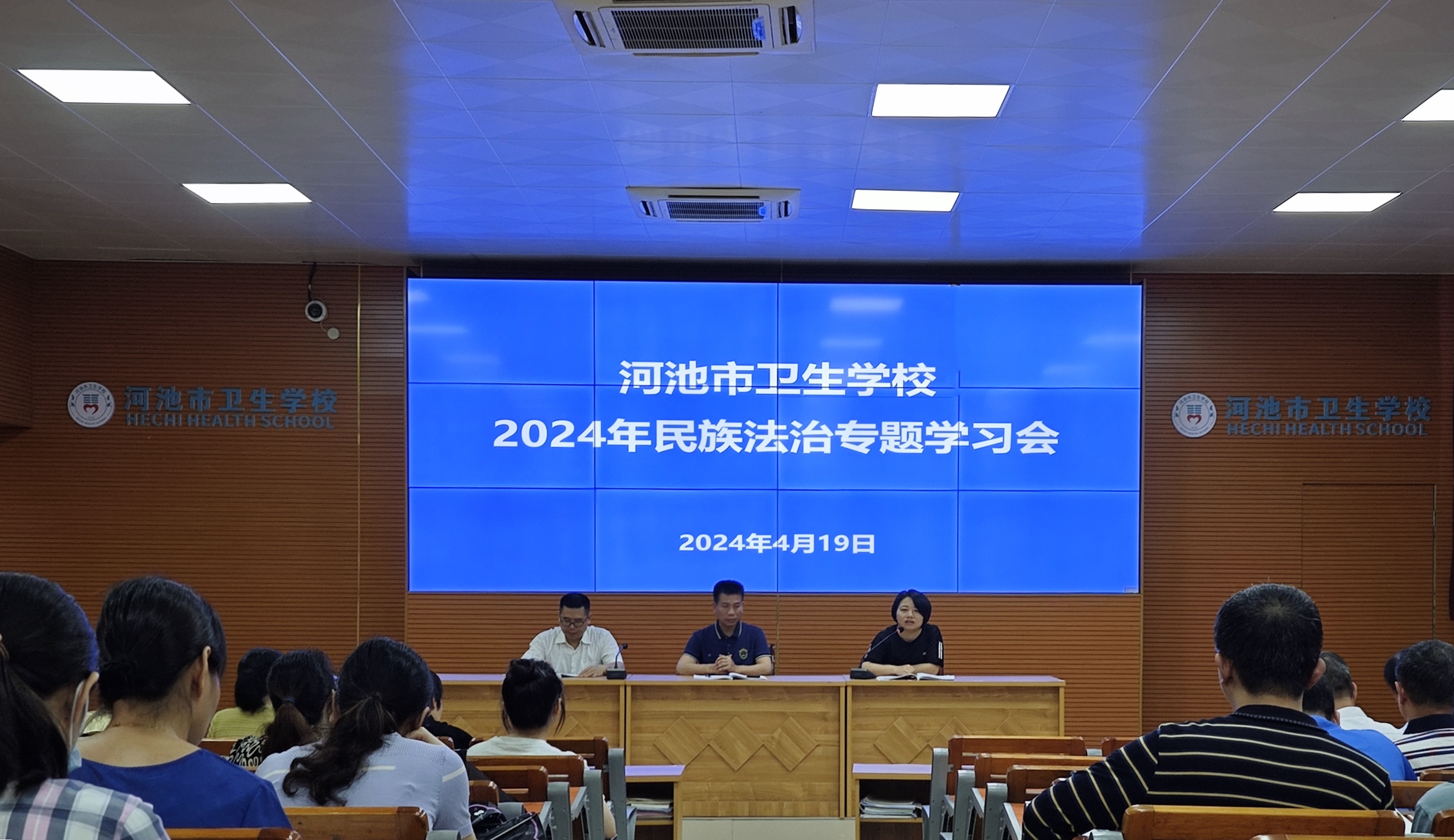 有序开展民族法治教育培训。在4月10日至11日,学校积极利用第二课堂时间,以班级为单位组织学生开展 2024年“广西三月三·法治在河池”民族法治主题班会课,围绕民族团结、民族平等和党的宗教信仰自由等政策内容进行宣教。在4月19日,面向全体教职工开展民族法治专题学习会,以《中国共产党统一战线工作条例》和《广西壮族自治区少数民族语言文字工作条例》等内容为重点,进行集中学习培训。在4月25日,组织全体师生召开2024年民族法治宣传专题讲座,邀请学校法律顾问宣传讲解我国民族区域自治制度发展历史、《中华人民共和国民族区域自治法》相关知识以及习近平法治思想,为进一步坚持和完善民族区域自治制度、做好新形势下的民族工作指明前进方向。通过主题教育培训,弘扬民族法治精神,实现民族法治知识入脑入心。