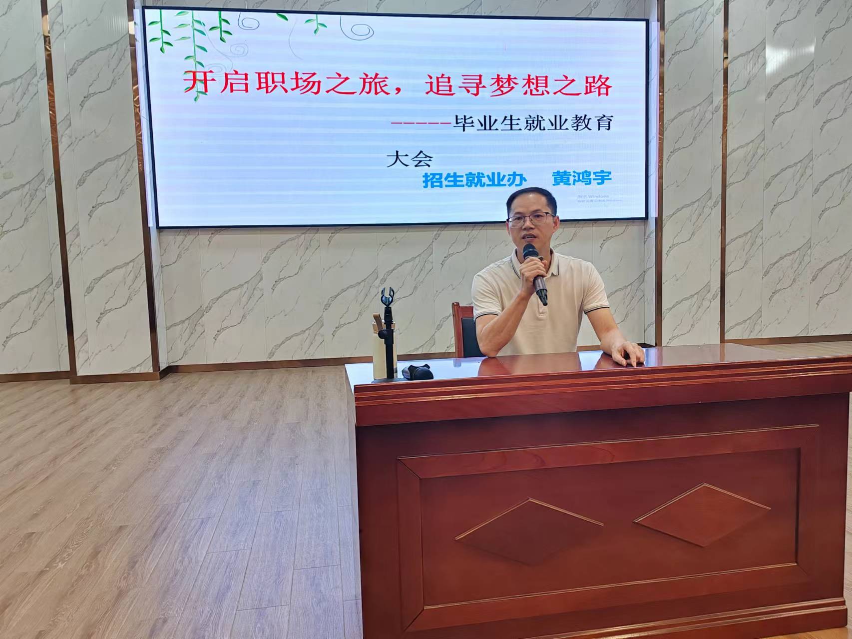 会上,黄鸿宇老师就今年的就业形势、如何依据自身定位确定奋斗目标以及根据目标该怎样做好前期准备工作等三个方面展开了详尽的阐述。其旨在让学生清晰认识到自身所面临的挑战与机遇,助力学生做好规划,激励学生通过多渠道去寻找就业机会,勇敢地迈出人生的关键第一步,从而为实现自身理想而拼搏奋进。