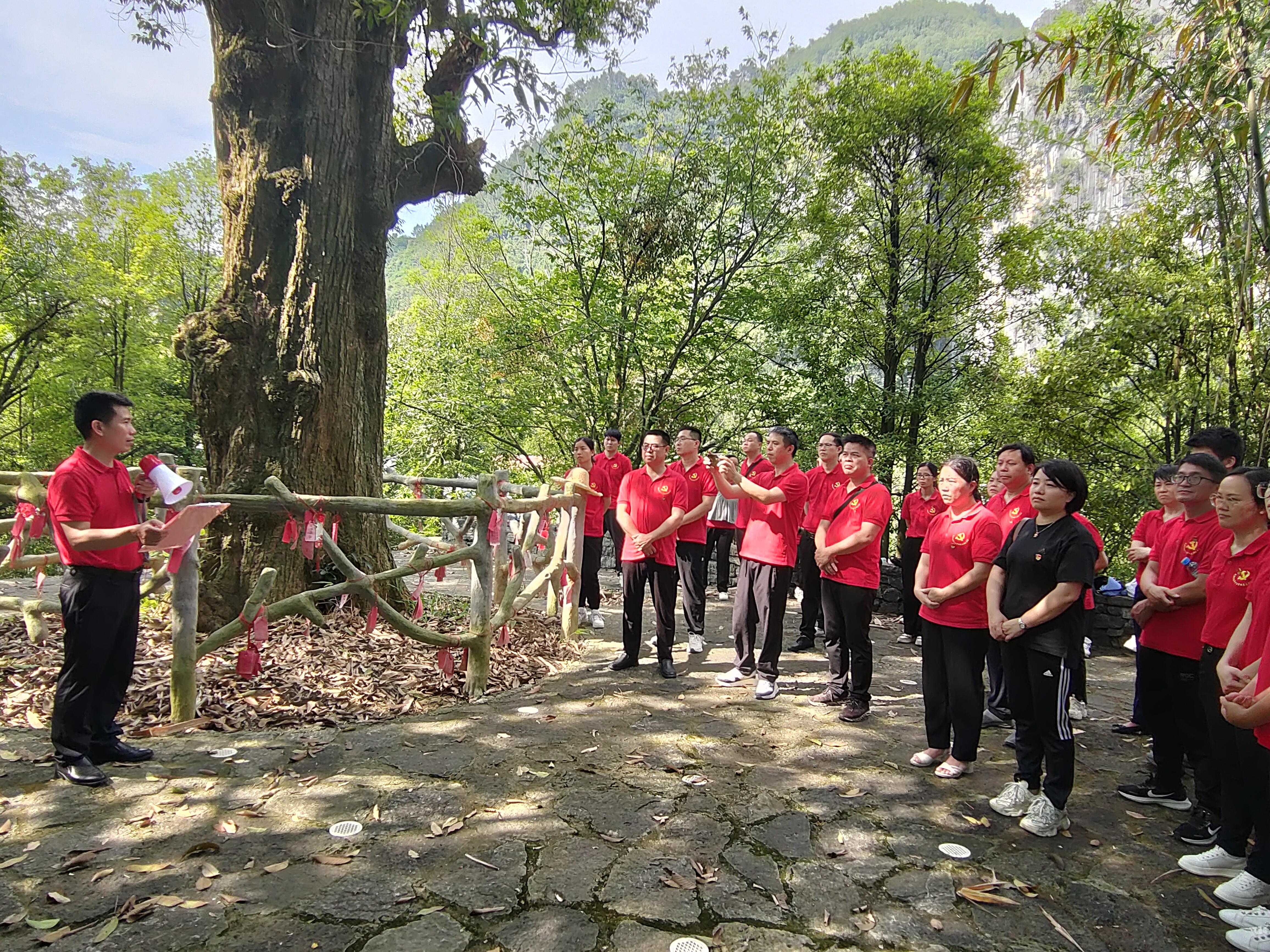 5月24日,我校全体在职党员、入党积极分子一行50人到河池市凤山县中亭乡红军村开展党纪学习教育暨党风廉政教育现场教学活动。