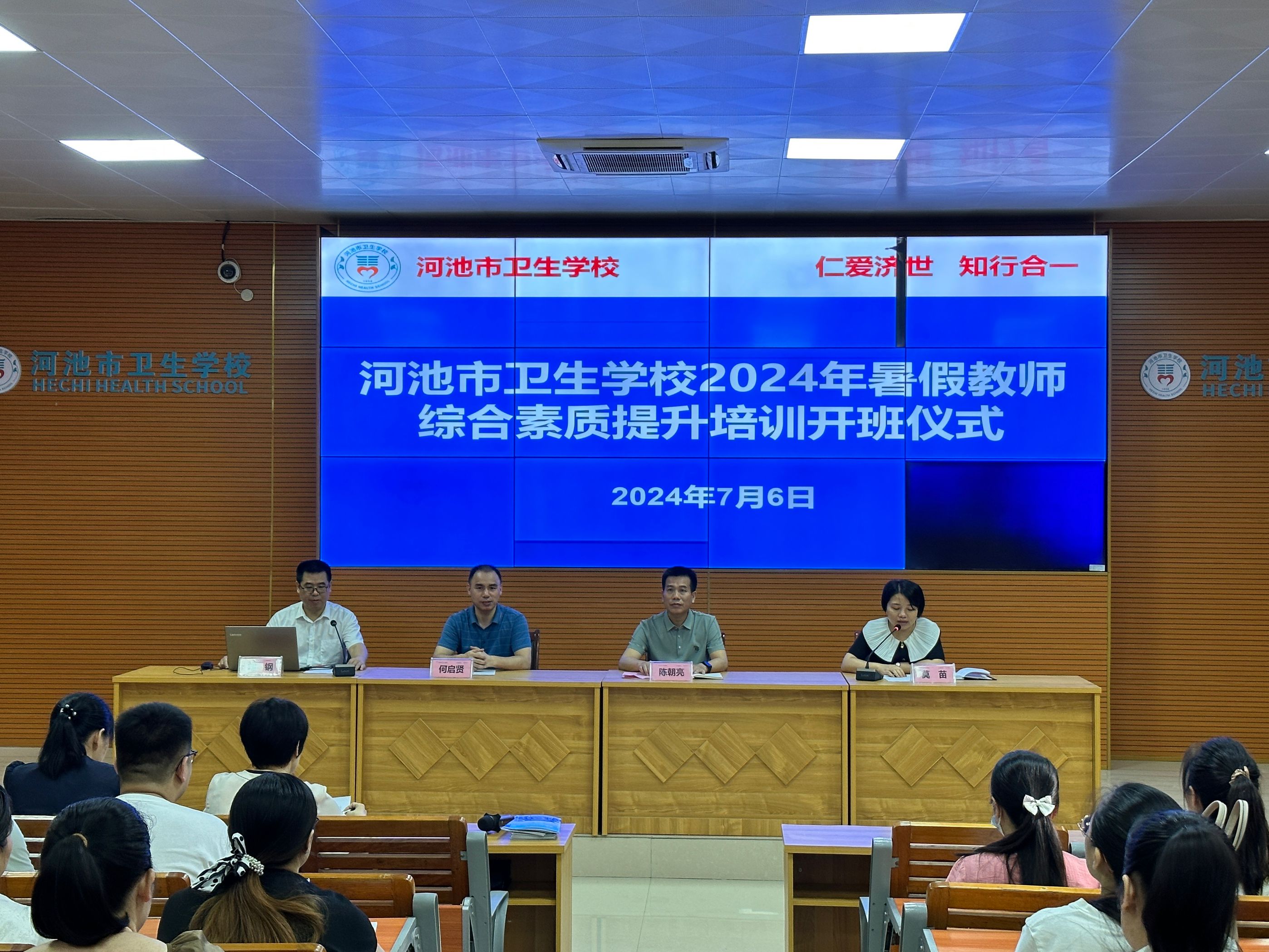 为深入学习贯彻习近平总书记关于教育的重要论述,提升教职工的综合素质和业务能力,打造一支高素质的教师队伍,凝心聚力推进学校事业高质量发展,7月6、7日,河池市卫生学校开展了2024年教职工综合素质提升培训。