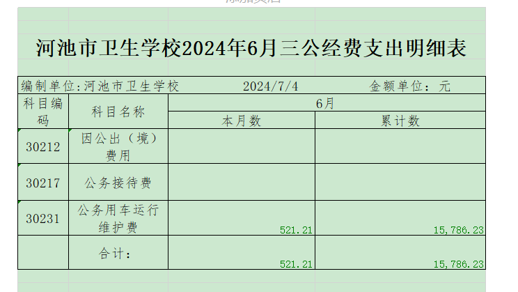 河池市卫生学校2024年6月三公经费支出明细表