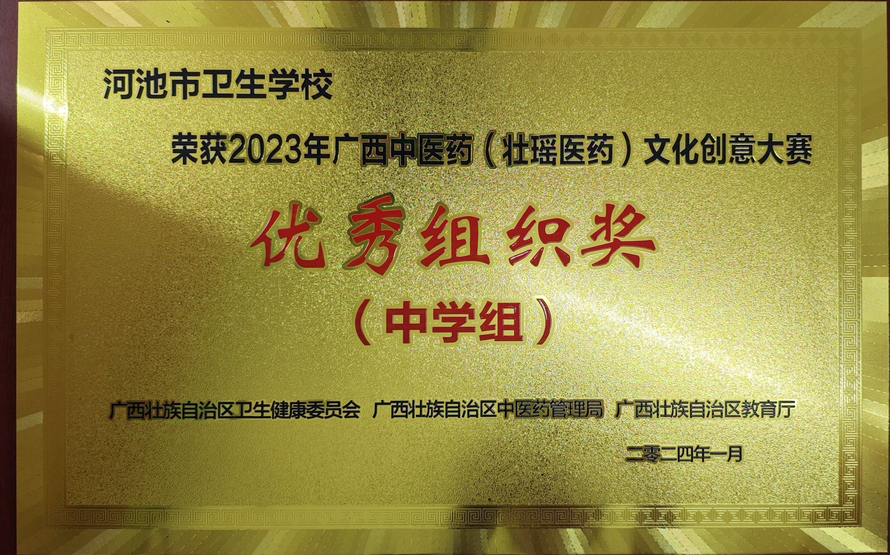 荣获2023年广西中医药(壮瑶医药)文化创意大赛优秀组织奖(中学组)-广西壮族自治区卫生健康委员会