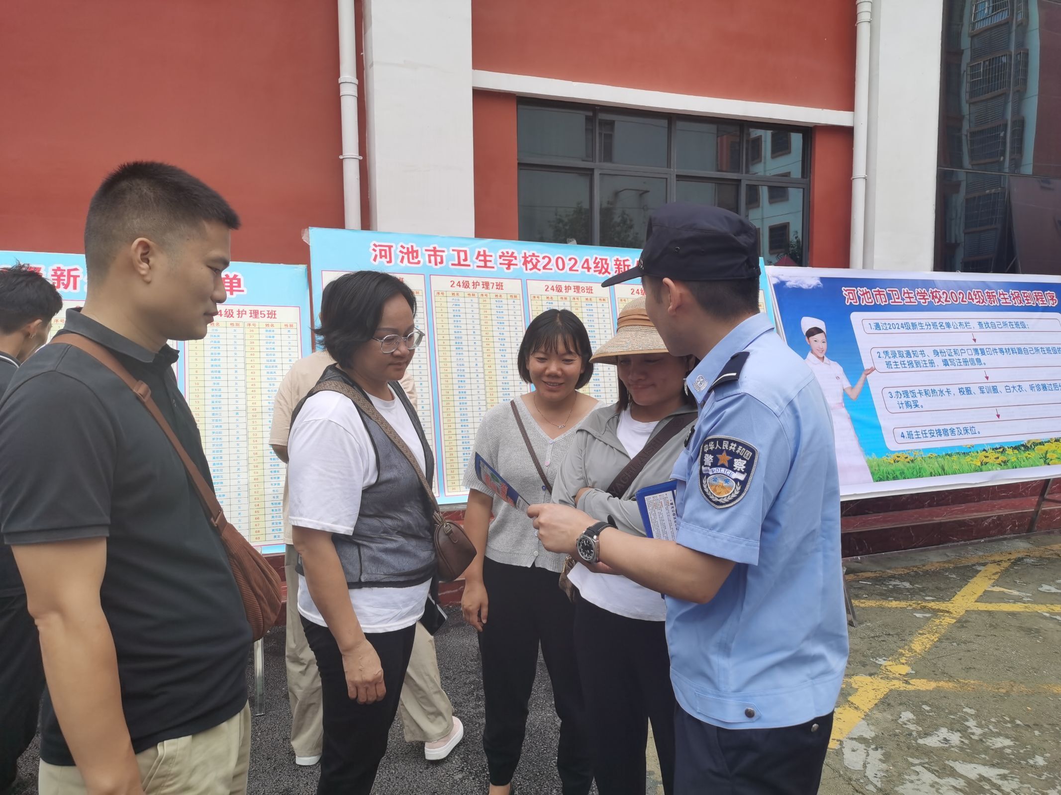 近日,金城江区东江派出所民警走进河池市卫生学校,开展2024年秋季学期“开学反诈第一课”宣传活动,全方面、多角度讲解反诈知识