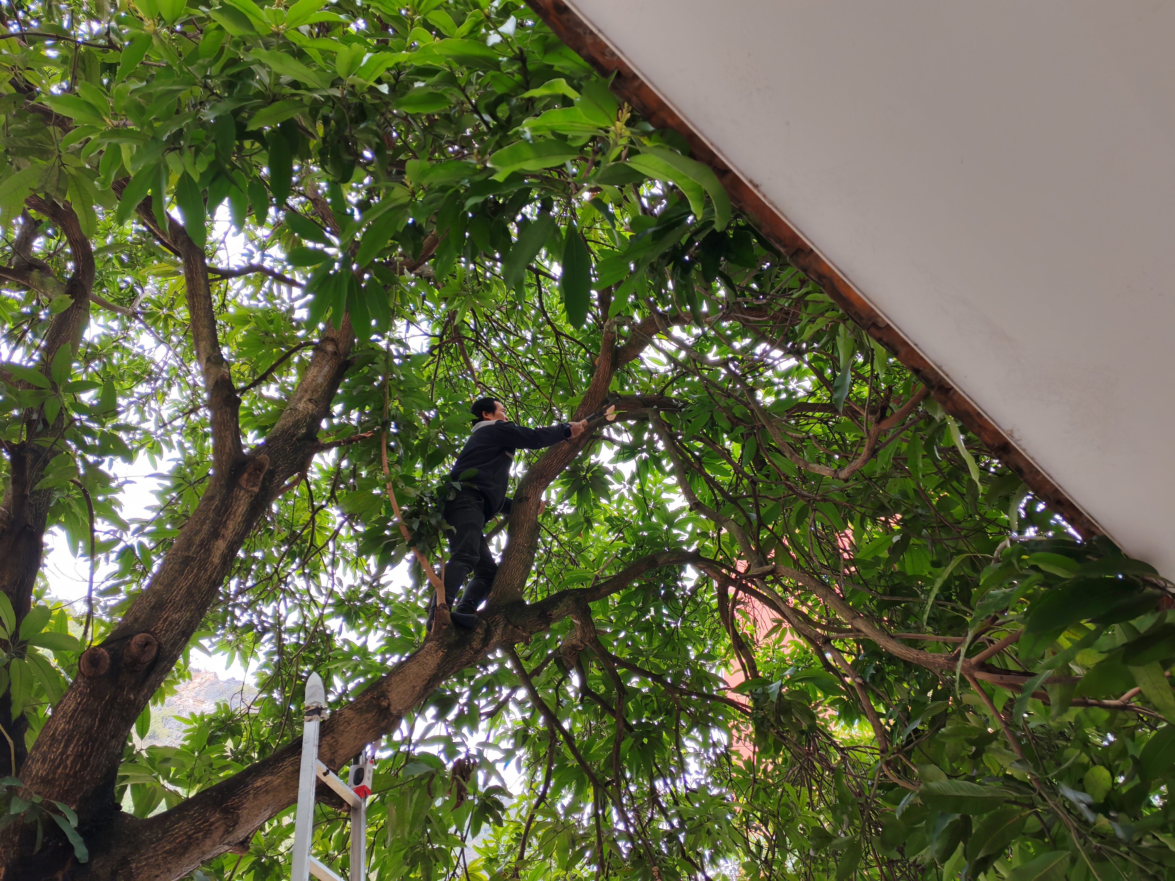 园林工人在修剪断枝