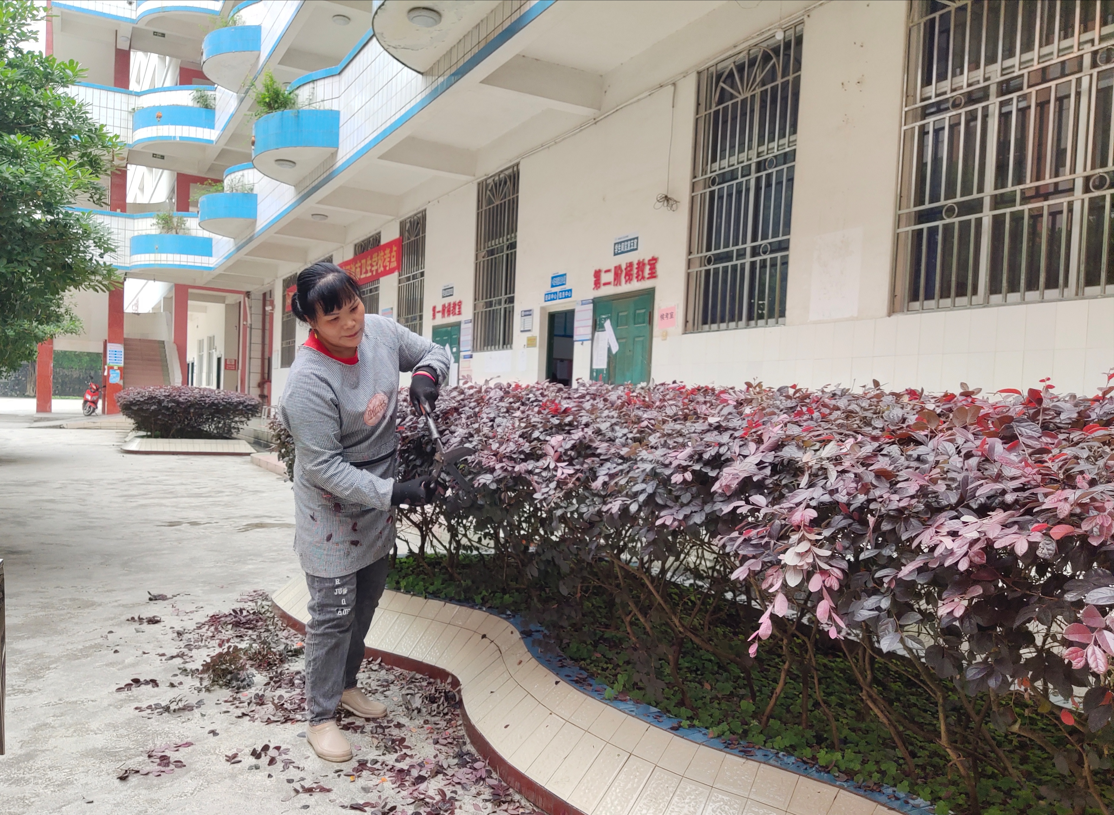 随着冬季到来,气温逐渐下降,植物进入到了新一季的养护关键期。为了确保校园绿化能够平稳度过寒冷的冬天,河池市卫生学校结合天气状况、植物生长特点,提早部署、精心组织,从植物修剪、病虫害防治、防寒保暖等多方面入手,有序开展冬季校园绿化养护工作。