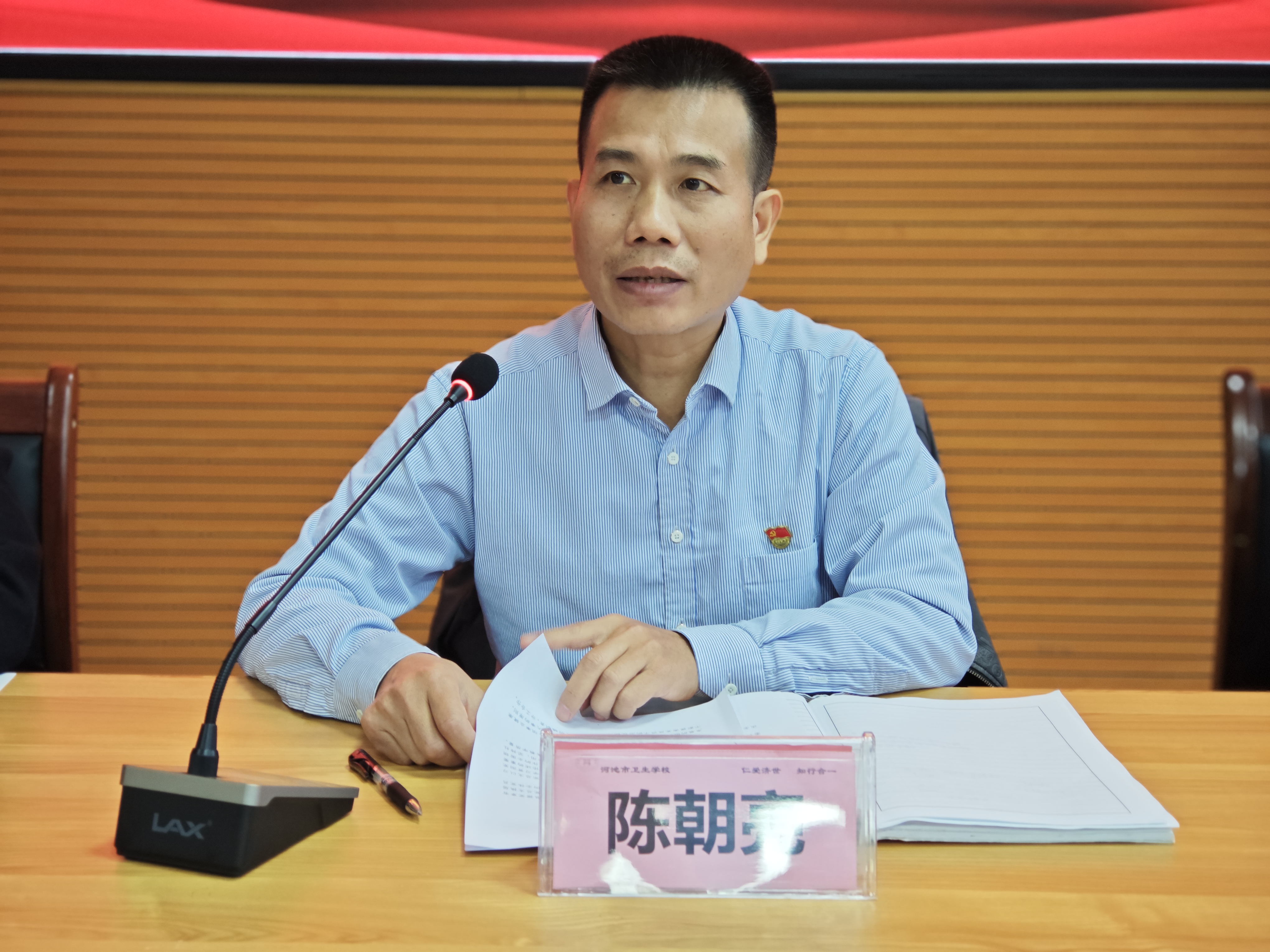 最后,陈朝亮同志主持召开了我校新一届总支部委员会第一次会议,会上选举陈朝亮为党总支书记、莫苗为副书记,对其他委员做了初步分工。