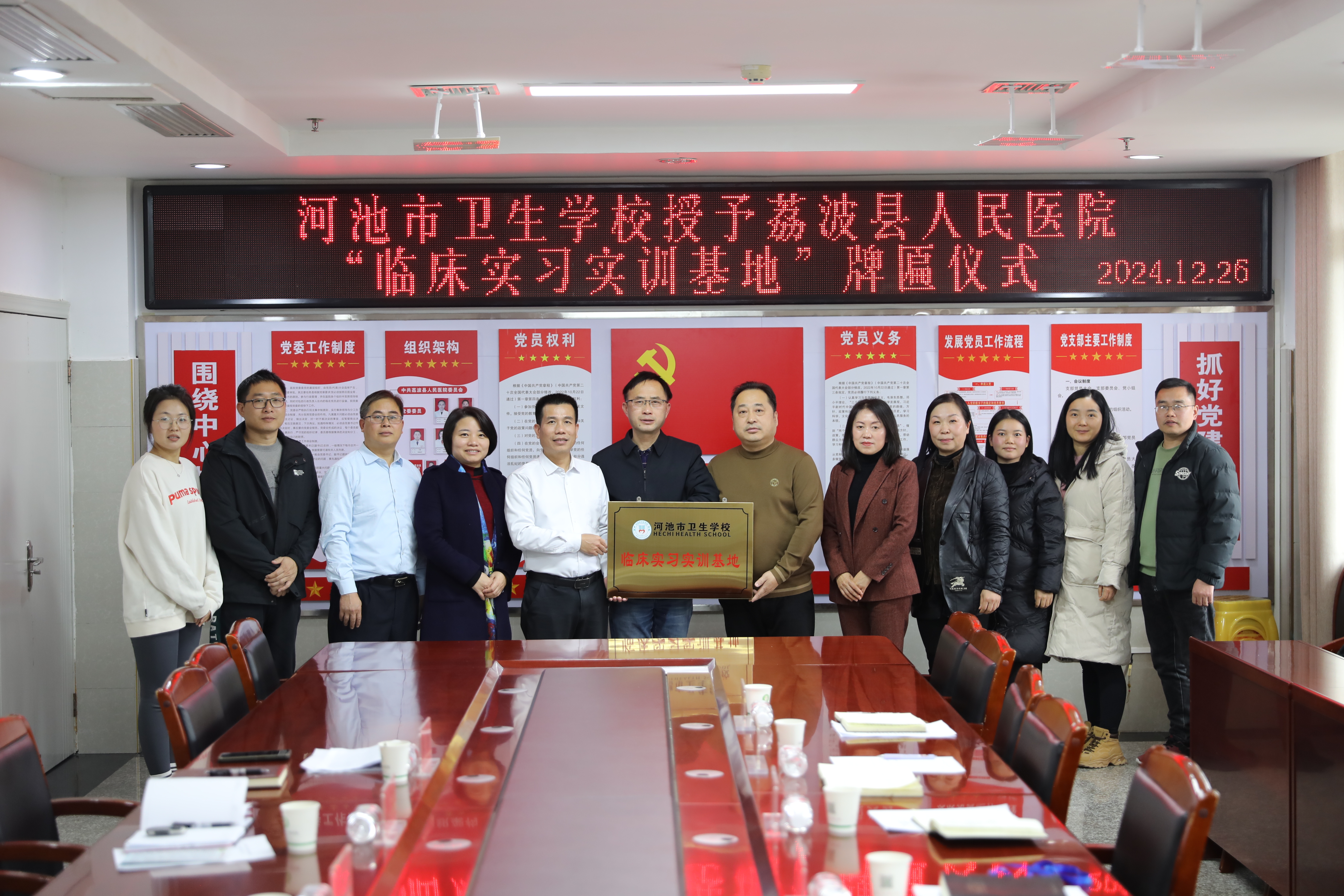 12月26日,河池市卫生学校党总支书记、校长陈朝亮带队到荔波县人民医院开展实习调研,并举行实习实训基地授牌仪式。