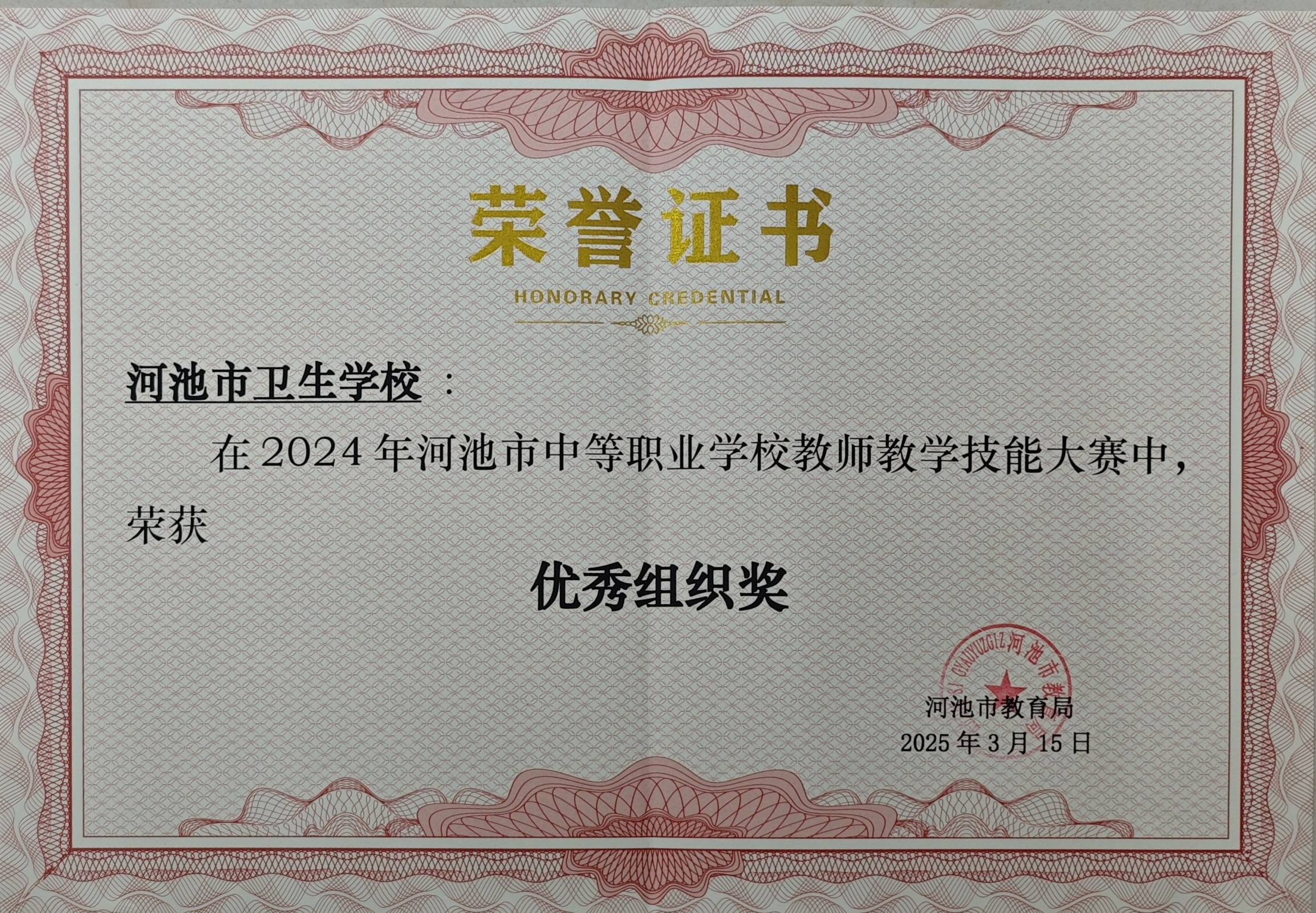 荣获2024年河池市中等职业学校教师教学技能大赛“优秀组织奖”-河池市教育局