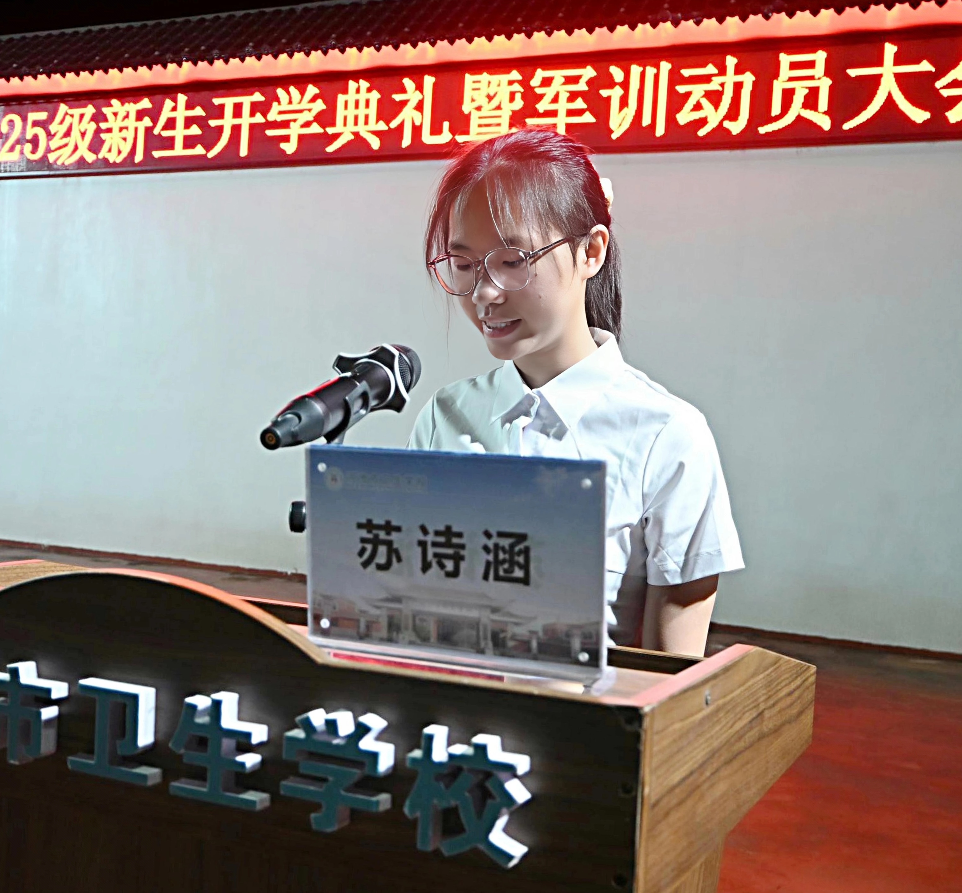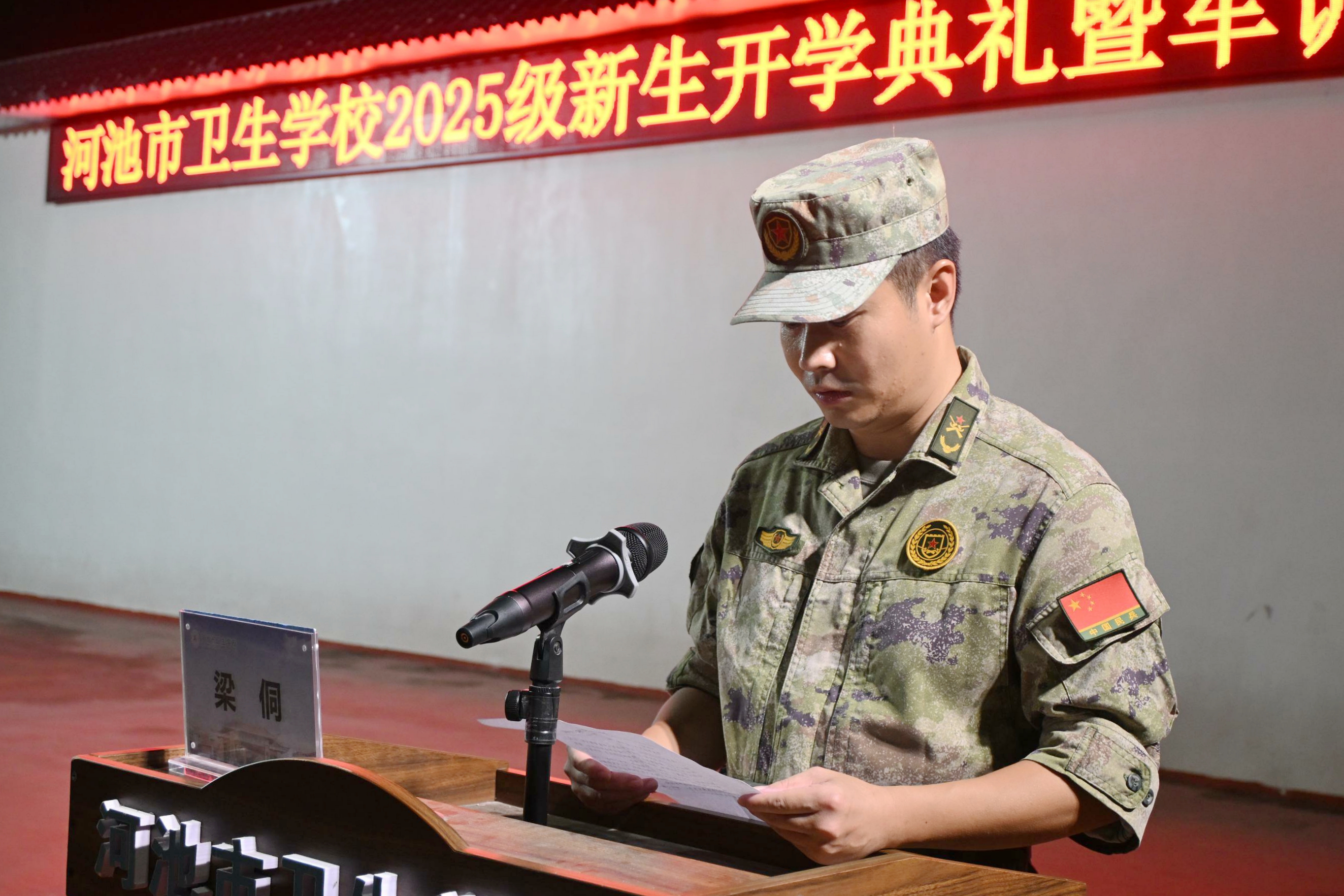 展示环节后,班主任代表邓媛老师发言,表示将全力做好学生的教育管理及服务工作,陪伴学生成长。教官代表梁侗承诺将科学组训、文明施教,高标准完成军训任务。新生代表苏诗涵则表示,一定会珍惜机会、认真参训,以优异成绩开启河池卫校新生活。副校长刘钢宣读了军训方案与纪律要求,为军训顺利开展提供清晰指引。