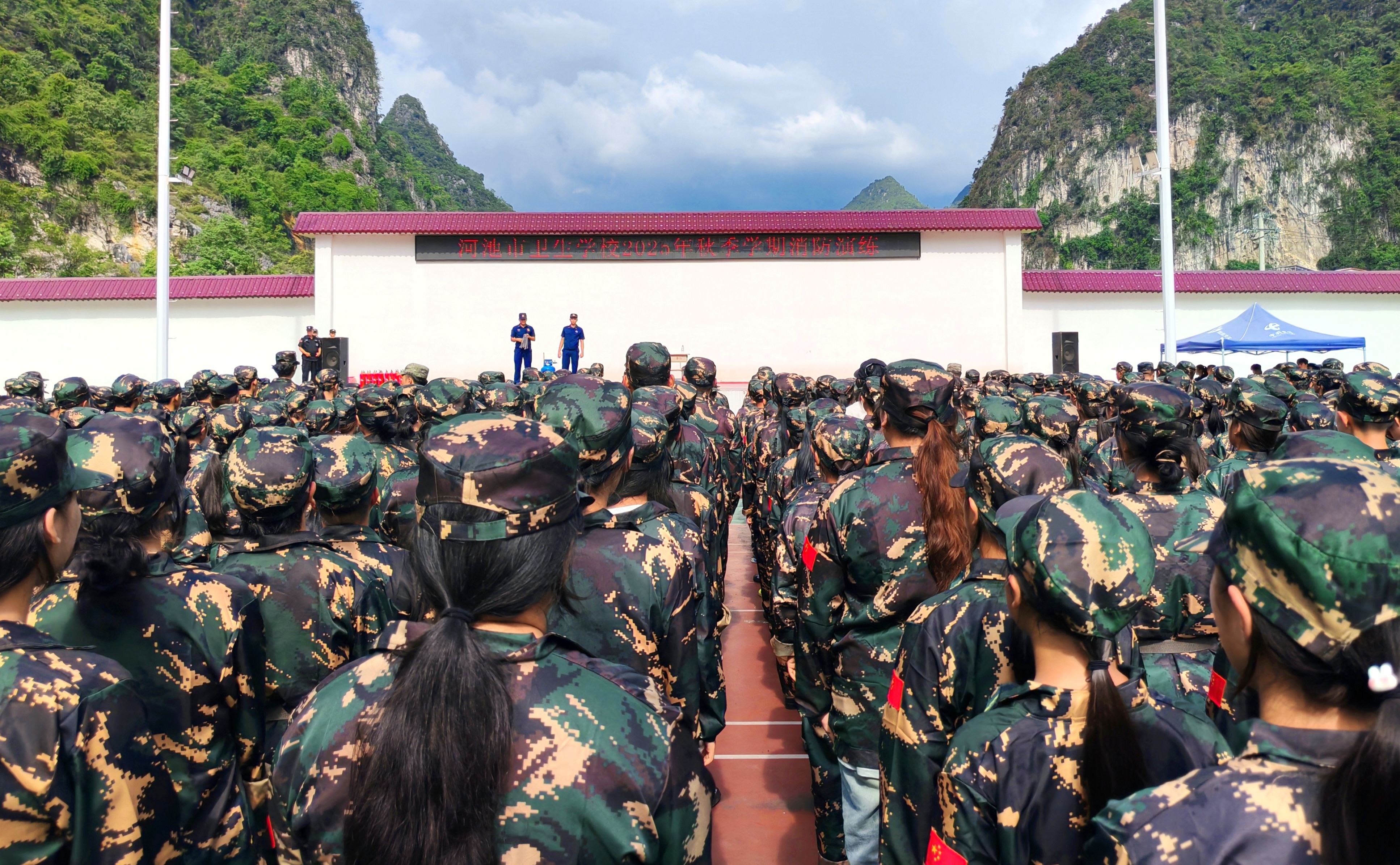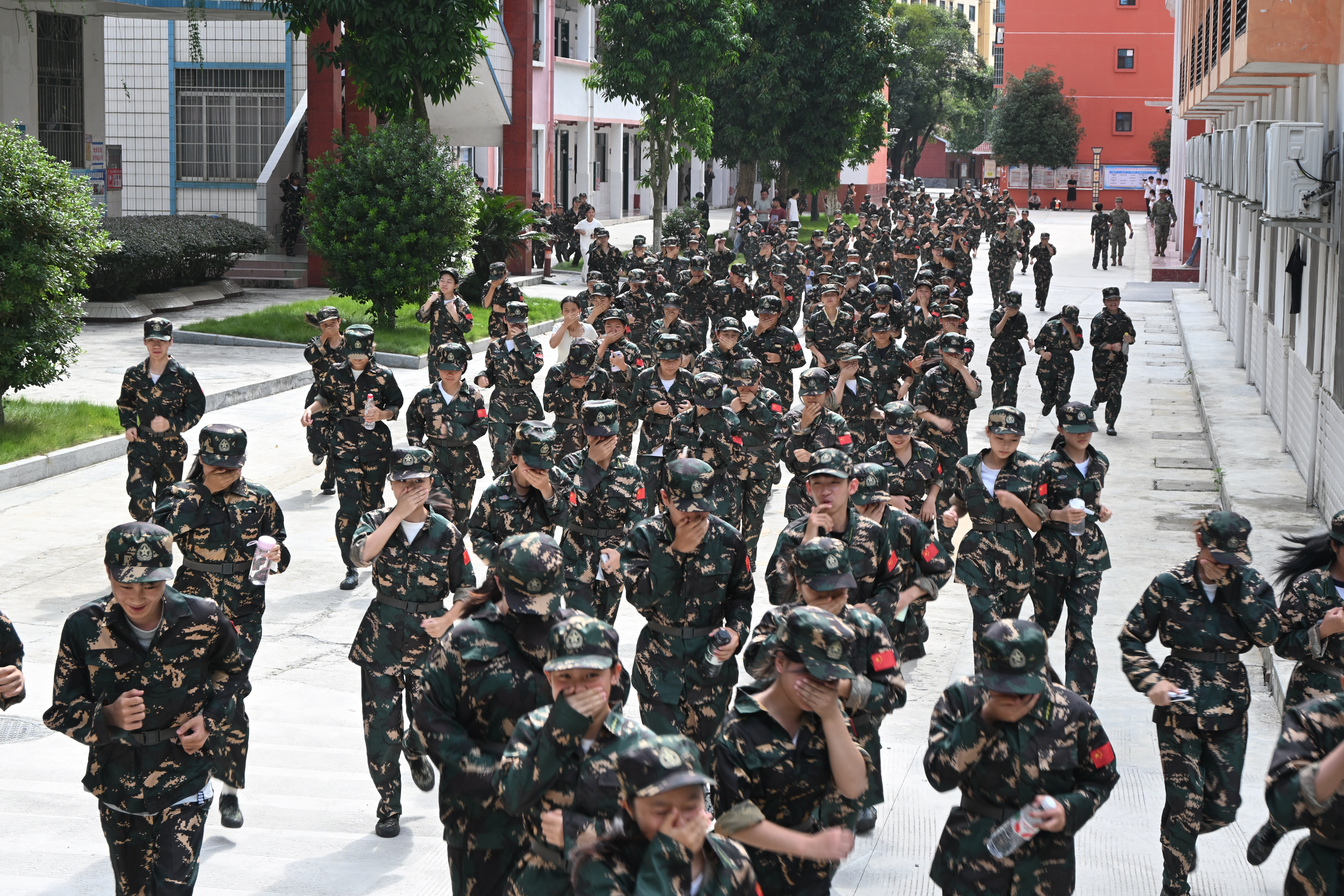 下午15时30分,急促的警报声骤然响起,新生们在教官与班主任的指挥下迅速反应:用湿毛巾或衣袖捂住口鼻,弯腰低姿,沿预定疏散路线快速、有序撤离。各楼层疏导员严密监控通道情况,确保无一遗漏。整个疏散过程紧张而高效,近千名师生在5分钟内全部安全转移至指定集结区——学校运动场。