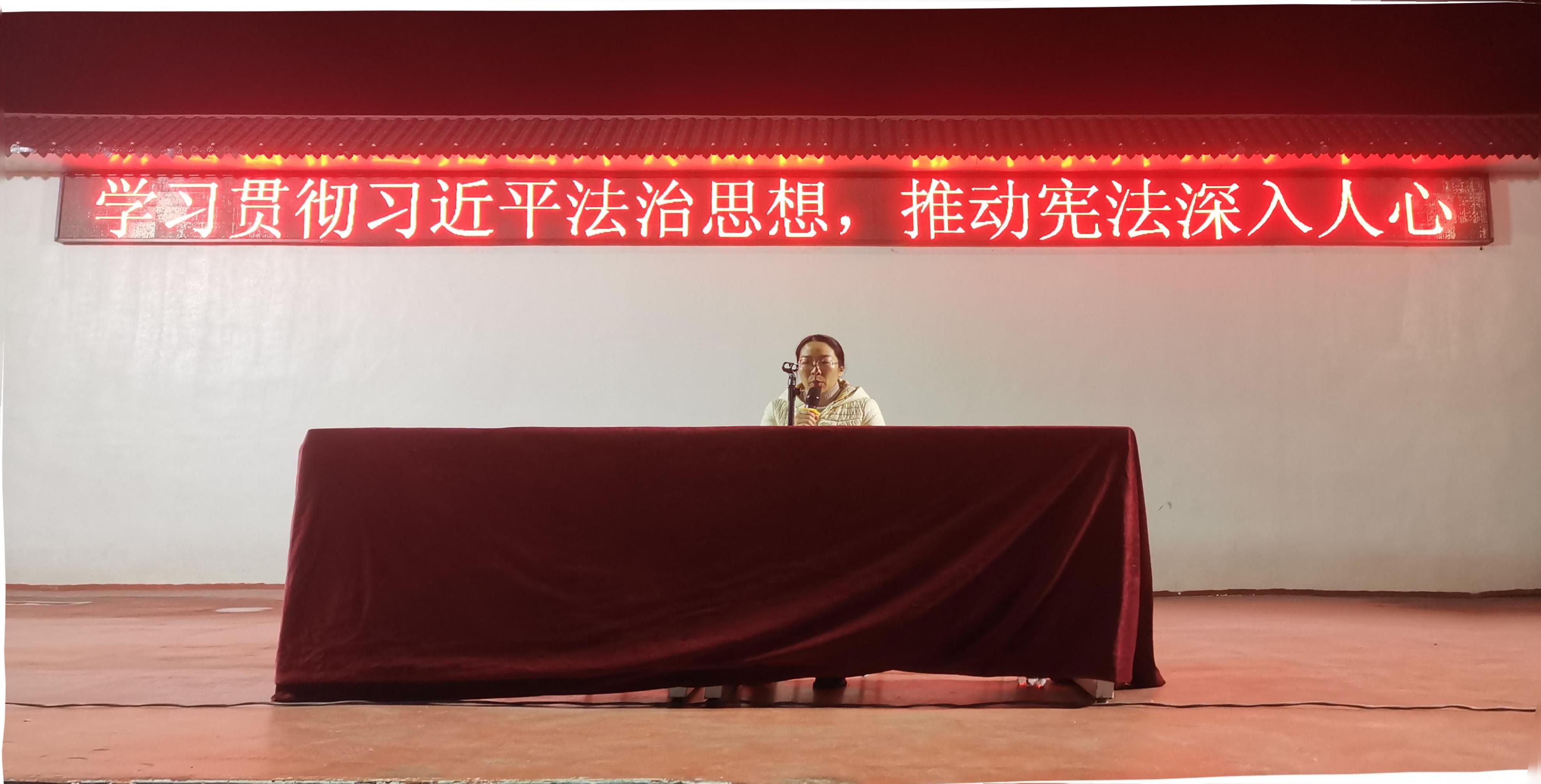 2025年12月4日晚19时,河池市卫生学校邀请东江镇政法单位走进校园,开展了一场综合法治宣讲活动。此次活动既是学校“12·4”国家宪法日主题教育的重要组成部分,也是切实维护校园安全的具体行动。东江镇派出所副所长宋衍霄、民警梁祎,东江镇司法所所长戴芳蕾以及东江镇副镇长韦殷师先后登台,围绕防范电信网络诈骗、国家安全教育、宪法知识普及及禁毒常识等内容,为全校师生带来了一堂生动而深刻的法治课。