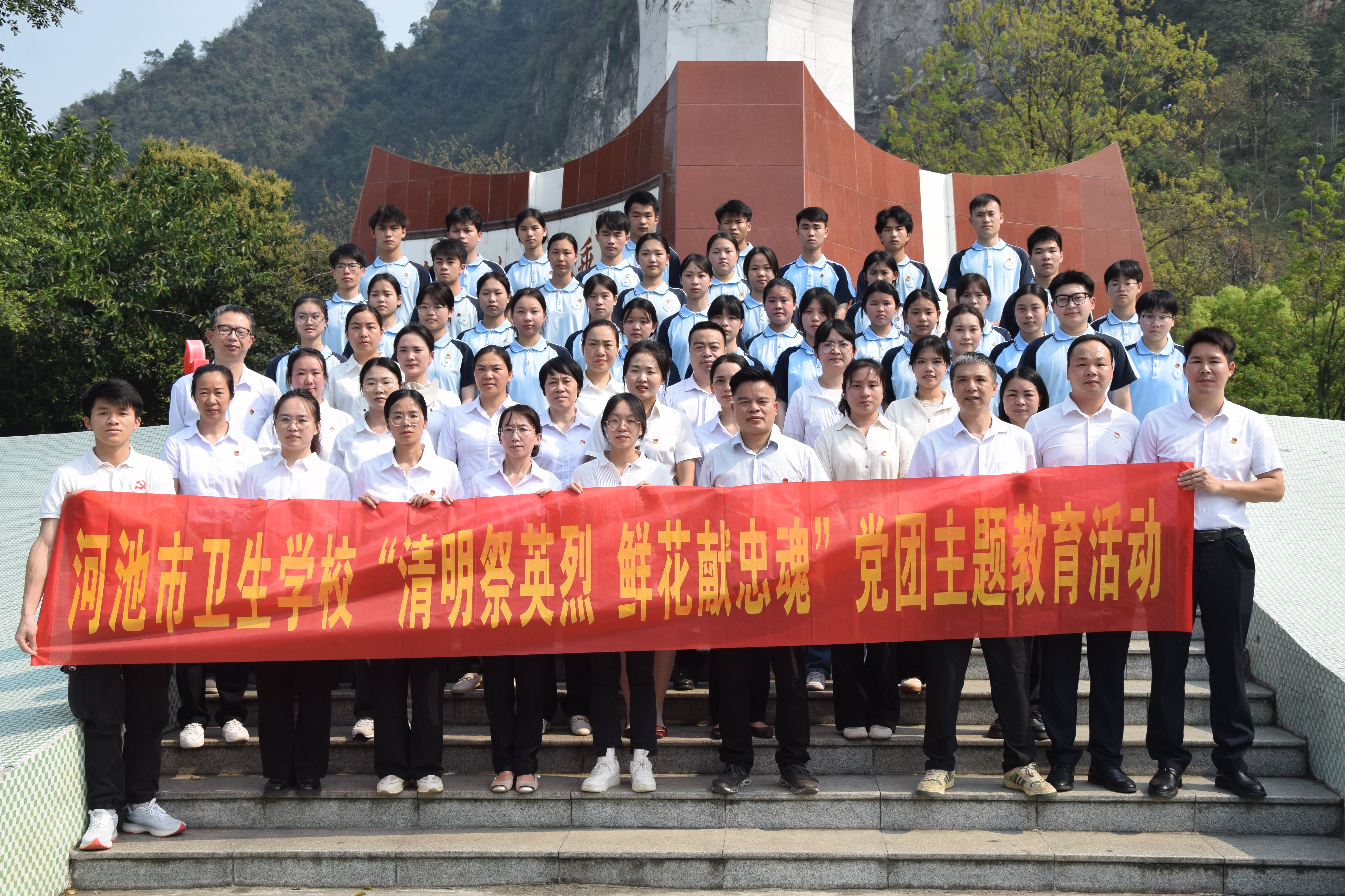 为缅怀革命先烈,弘扬爱国主义精神,3月26日,河池市卫生学校组织各党支部党员、学生团员代表等100余人前往金城江公园烈士纪念碑,开展“清明祭英烈 鲜花献忠魂”2025年党团爱国主题教育活动。