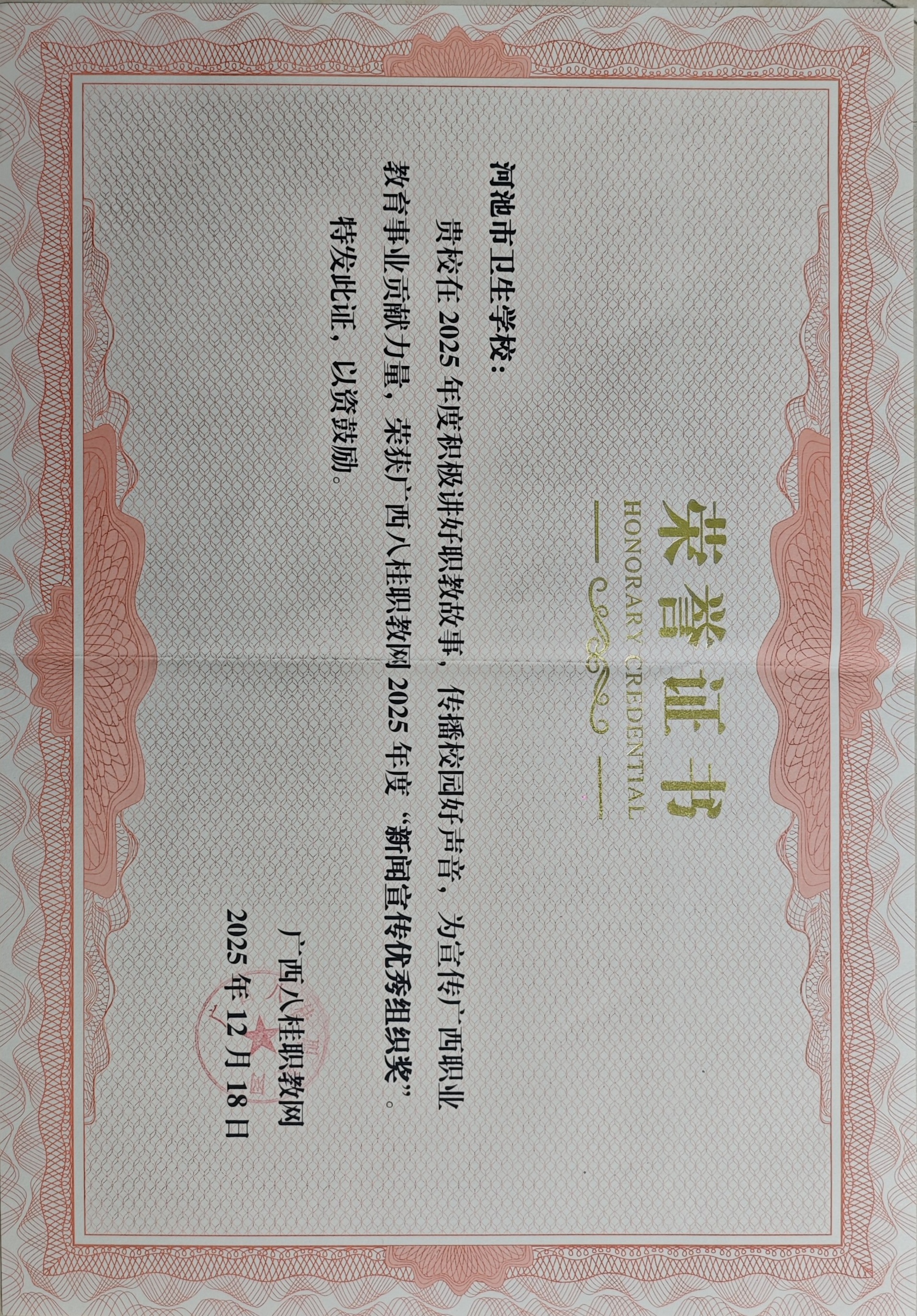 广西八桂职教网2025年度“新闻宣传优秀组织奖”-广西八桂职教网