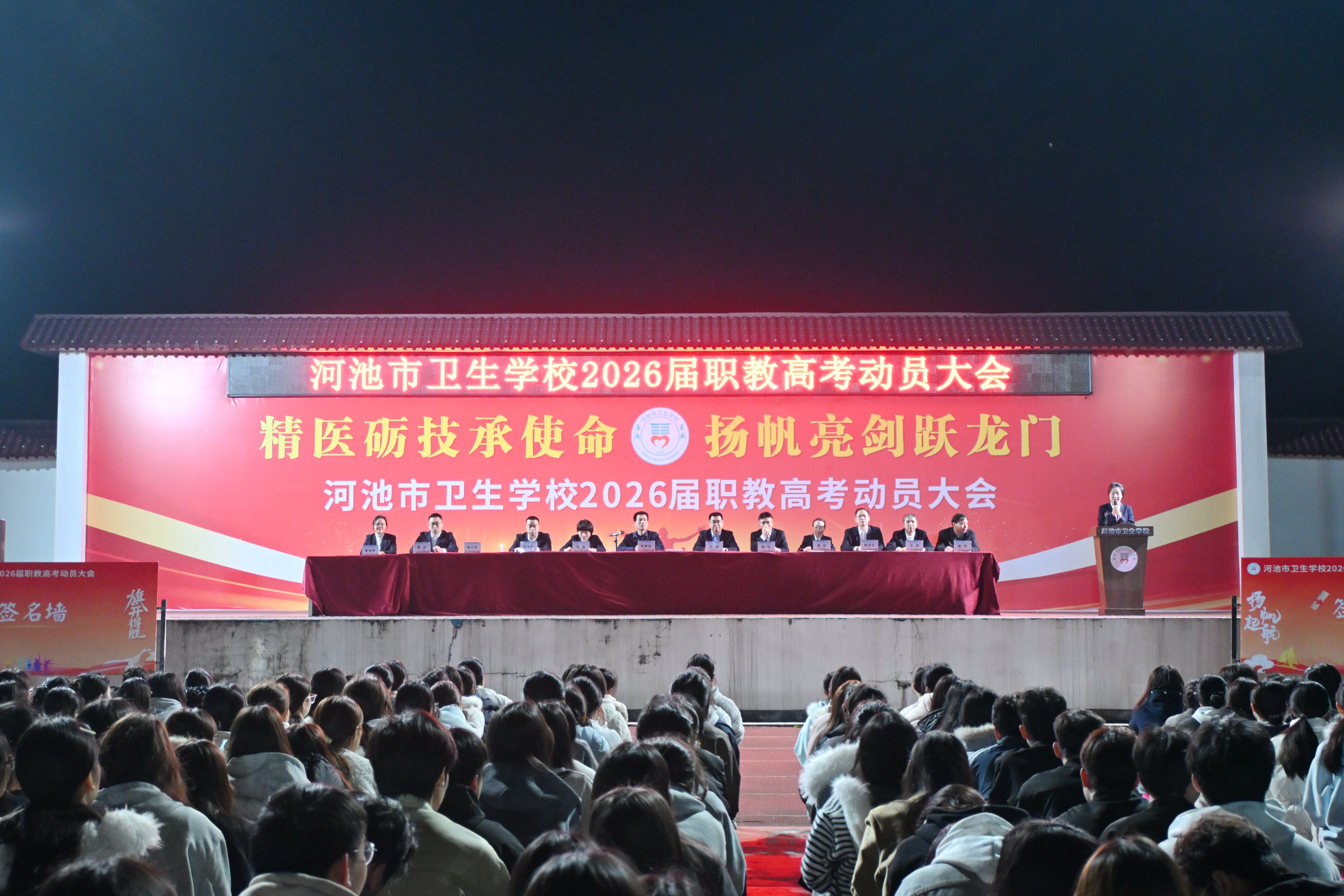 春潮涌动启新程,奋楫扬帆正当时!3月16日晚,我校2026届职教高考动员大会在学校运动场隆重召开。学校领导、科室负责人、全体在校生及班主任齐聚一堂,共同为即将迎战职教高考的学子们加油鼓劲,现场暖意融融、斗志昂扬,处处洋溢着奋发向上的浓厚氛围。