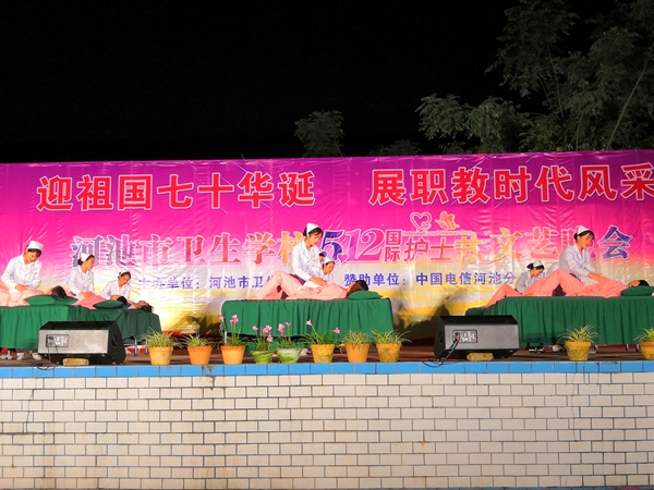 5月10日,在国际护士节到来之际,河池市卫生学校隆重举行5.12国际护士节晚会。谭白梅副校长代表学校对辛勤奉献在护理人才培养一线的老师和热爱护理事业的同学们致以节日的问候。