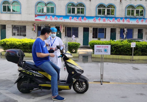 (防疫人员认真对考生进行扫码测体温