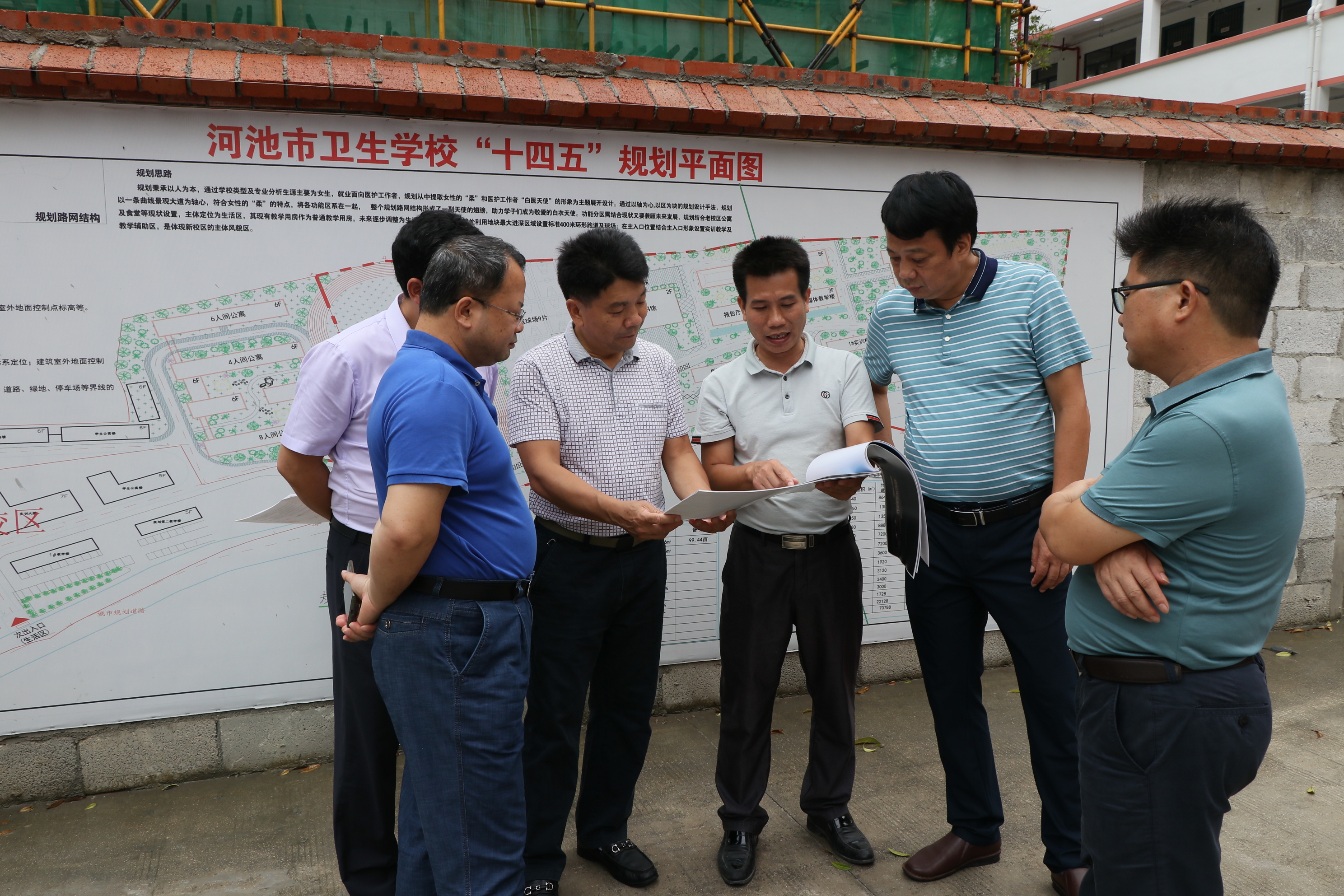 9月7日,河池市卫健委主任韦东禄、副主任文彪一行莅临河池市卫生学校检查开学工作。学校陈朝亮校长、刘钢副校长、周轩副校长代表学校迎接检查组的到来,并配合检查组对学校2020年秋季学期开学工作进行检查。
