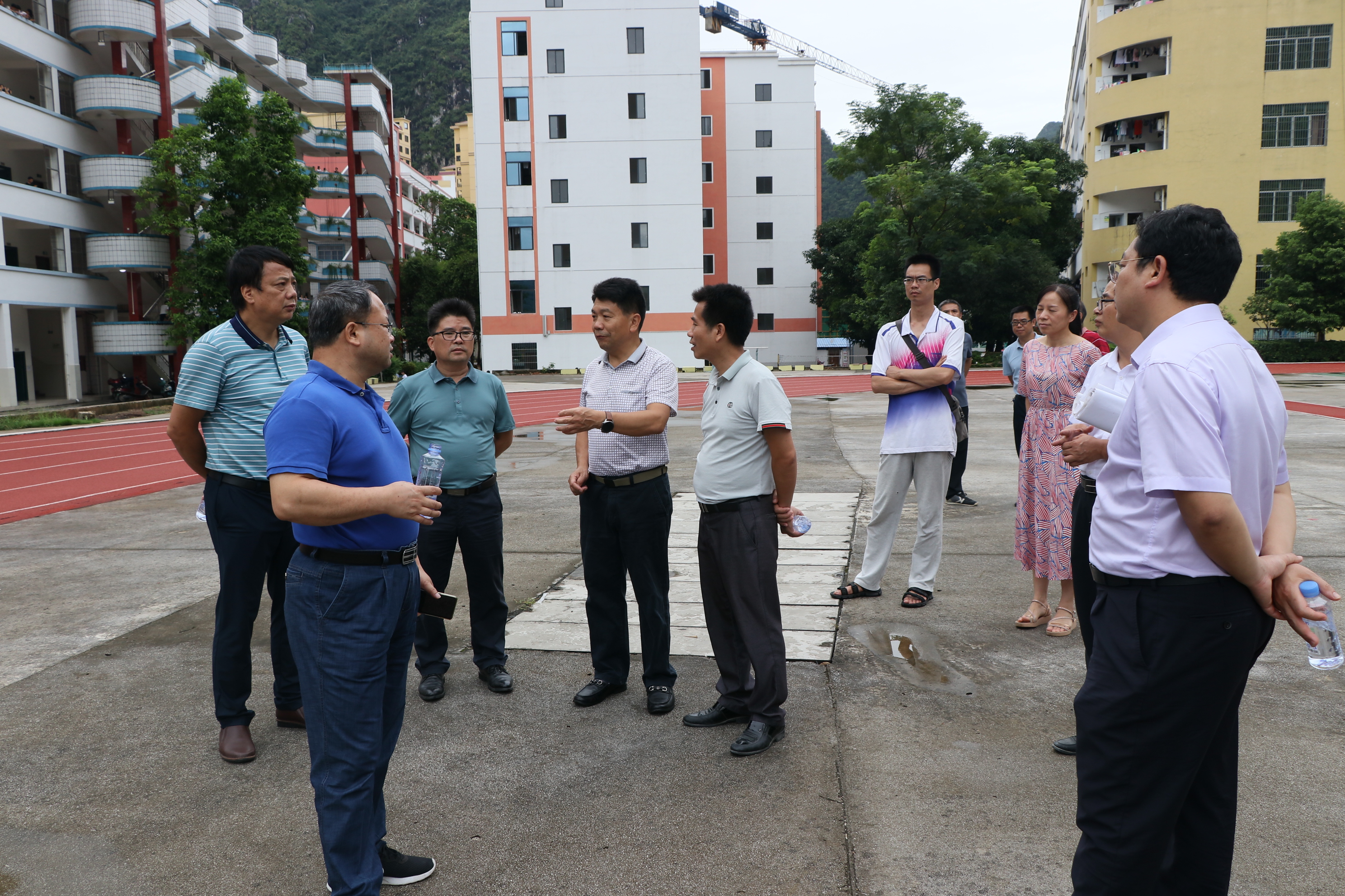 在学校十四五规划图前,韦东禄主任一行详细了解新校区整体设计情况,要求学校在后期发展规划与远景目标实现上努力探寻,多学习、多思考、多研究,做好整体规划,对学校远景目标进行定位与思考,用先进的教育理念引领校园文化建设,不断提升学校办学与层次品位。(韦恩豪)