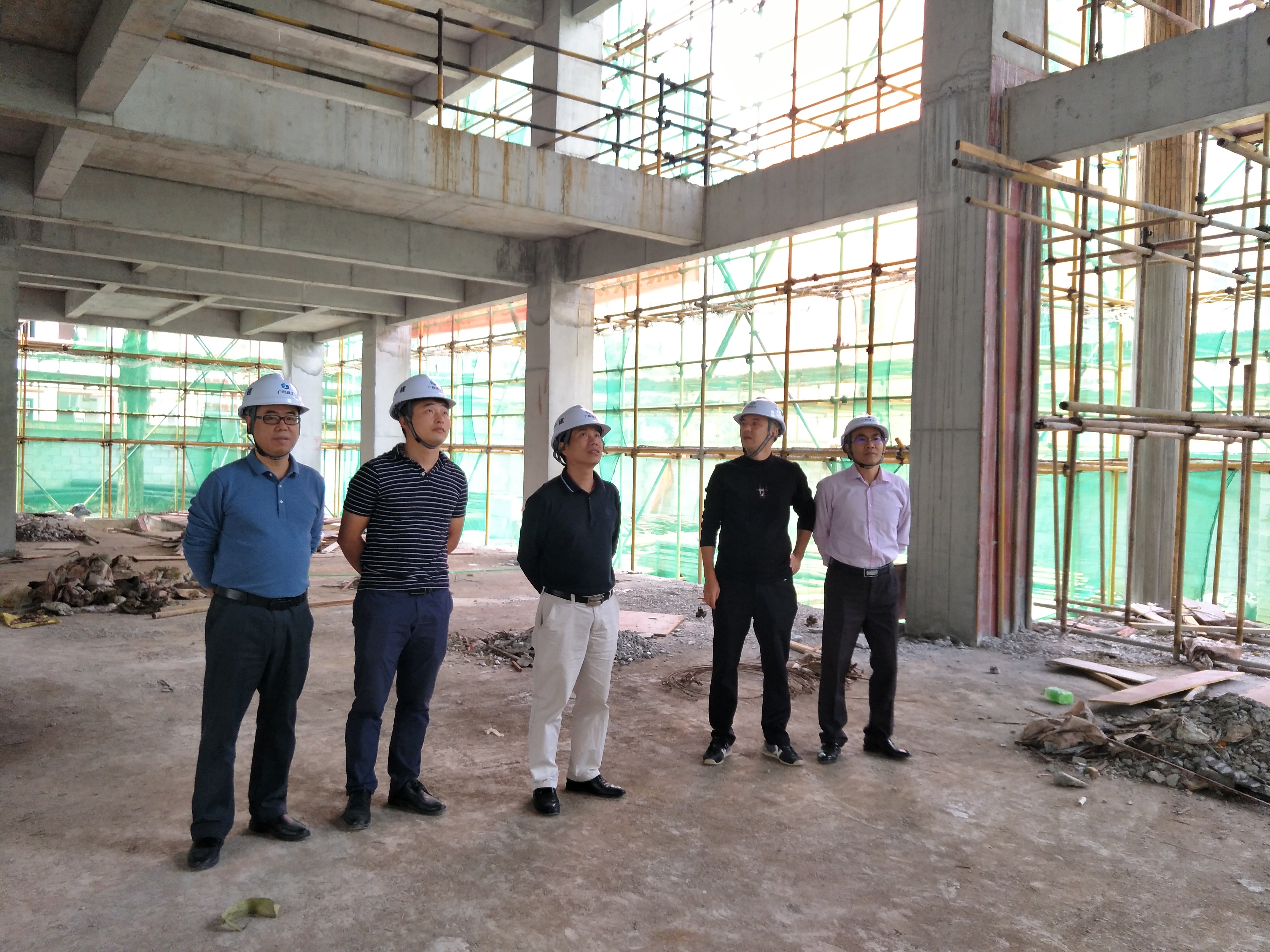 10月13日上午,学校陈朝亮校长、刘钢副校长、周轩副校长以及学校总务科江滨科长在广西建工集团经理带领下实地检查了我校实训大楼建设情况。