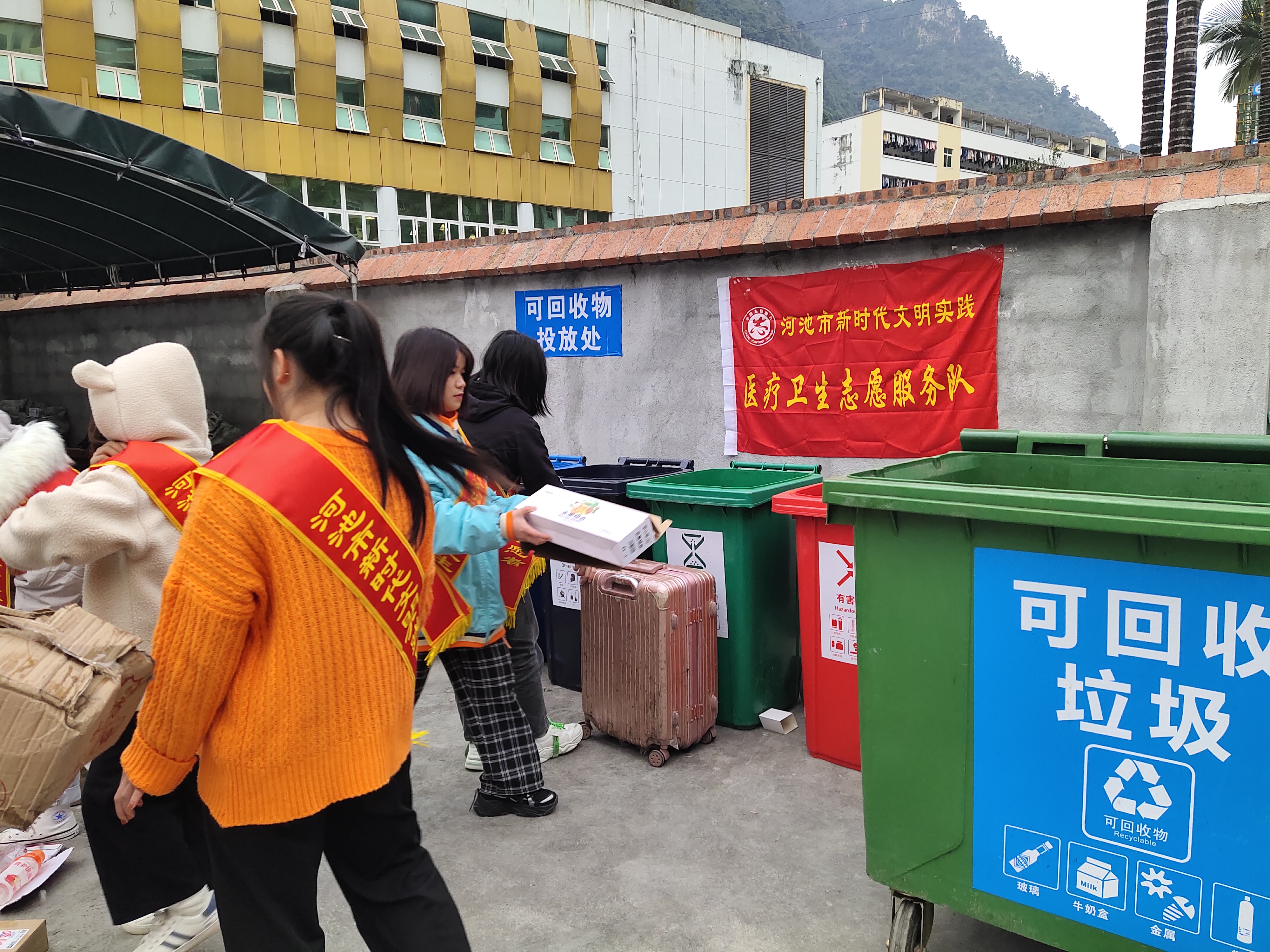 为深入落实上级部门关于垃圾分类的工作部署安排,推动校园垃圾分类管理工作,近期以来,河池市卫生学校开展了形式多样的宣传活动,利用校园广播、黑板报、宣传橱窗、主题班会、主题演讲、建立垃圾分类督导员等多种形式和载体,积极宣传垃圾分类知识,让学校全体师生对垃圾分类有更多的了解。12月22日,在学校教师志愿者的带领下,学生志愿者们来到学校垃圾处理池,及指导同学们如何做好垃圾分类。小至烟头,大至纸箱,一个也不放过,都按要求做好分类工作。