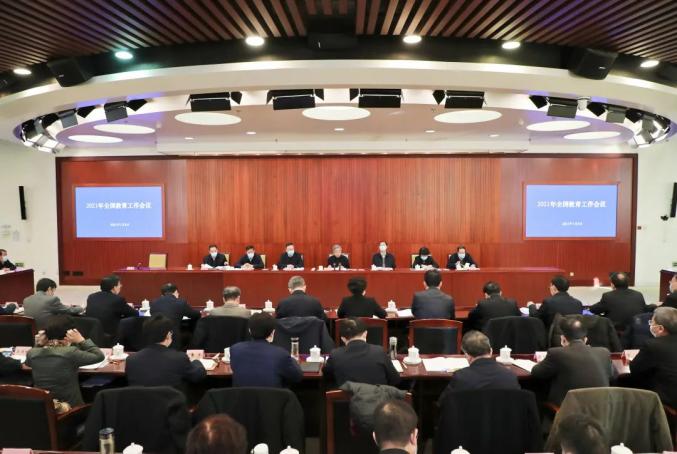 1月7日至8日,2021年全国教育工作会议在京召开。会议强调,要以习近平新时代中国特色社会主义思想为指导,贯彻落实党的十九大和十九届二中、三中、四中、五中全会精神,贯彻落实习近平总书记关于教育的重要论述和全国教育大会精神,按照“五位一体”总体布局和“四个全面”战略布局,增强“四个意识”、坚定“四个自信”、做到“两个维护”,坚持稳中求进工作总基调,立足新发展阶段,贯彻新发展理念,构建新发展格局,以推动高质量发展为主题,以改革创新为根本动力,坚持系统观念,更好统筹发展与安全,坚持和加强党对教育工作的全面领导,全面贯彻党的教育方针,落实立德树人根本任务,坚持发展抓公平、改革抓体制、安全抓责任、整体抓质量、保证抓党建,全面推进依法治教,巩固拓展疫情防控和教育改革发展成果,为建设高质量教育体系立柱架梁,推进教育治理体系和治理能力现代化,为建设教育强国开好局、起好步,以优异成绩庆祝建党100周年。教育部党组书记、部长陈宝生作工作报告。