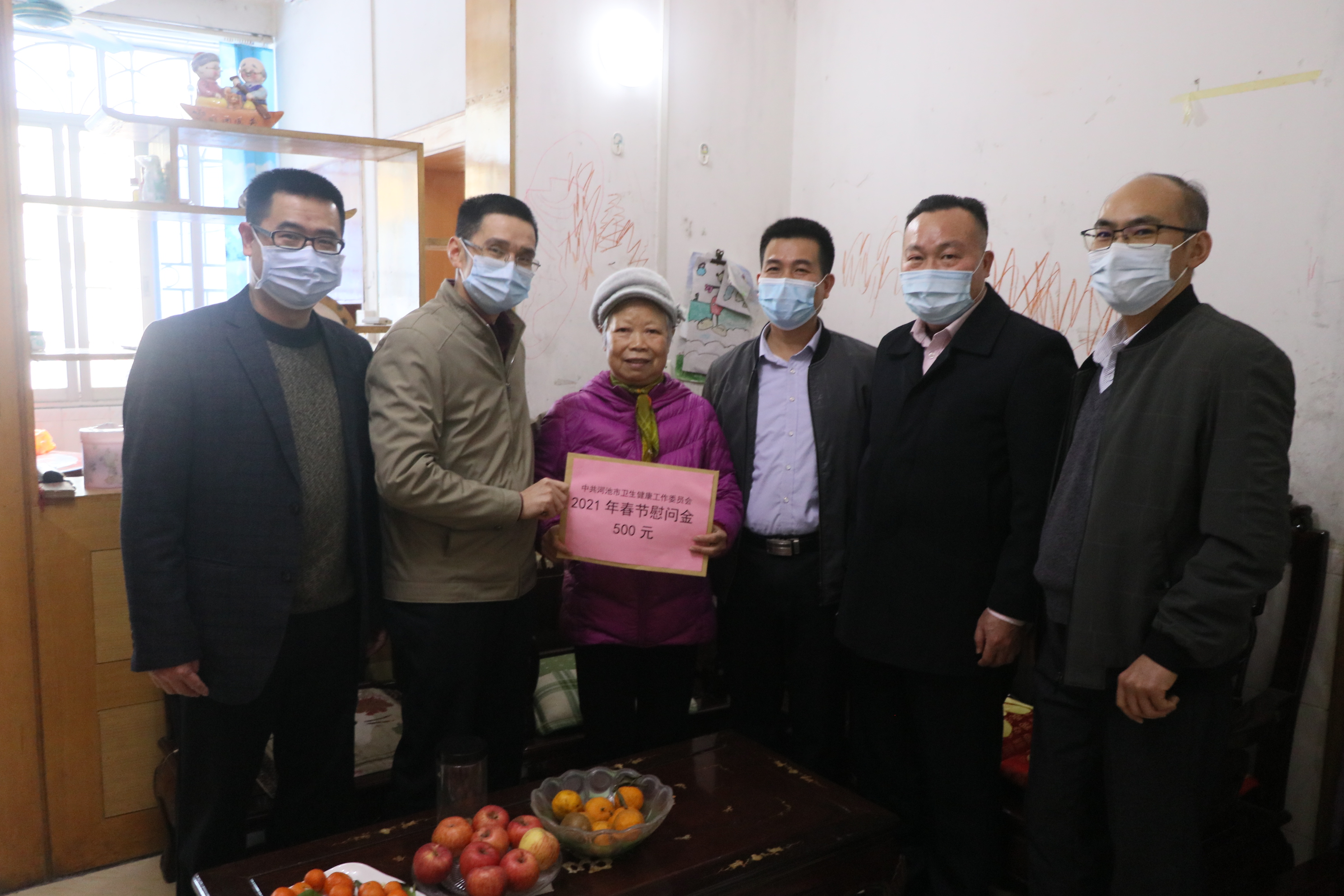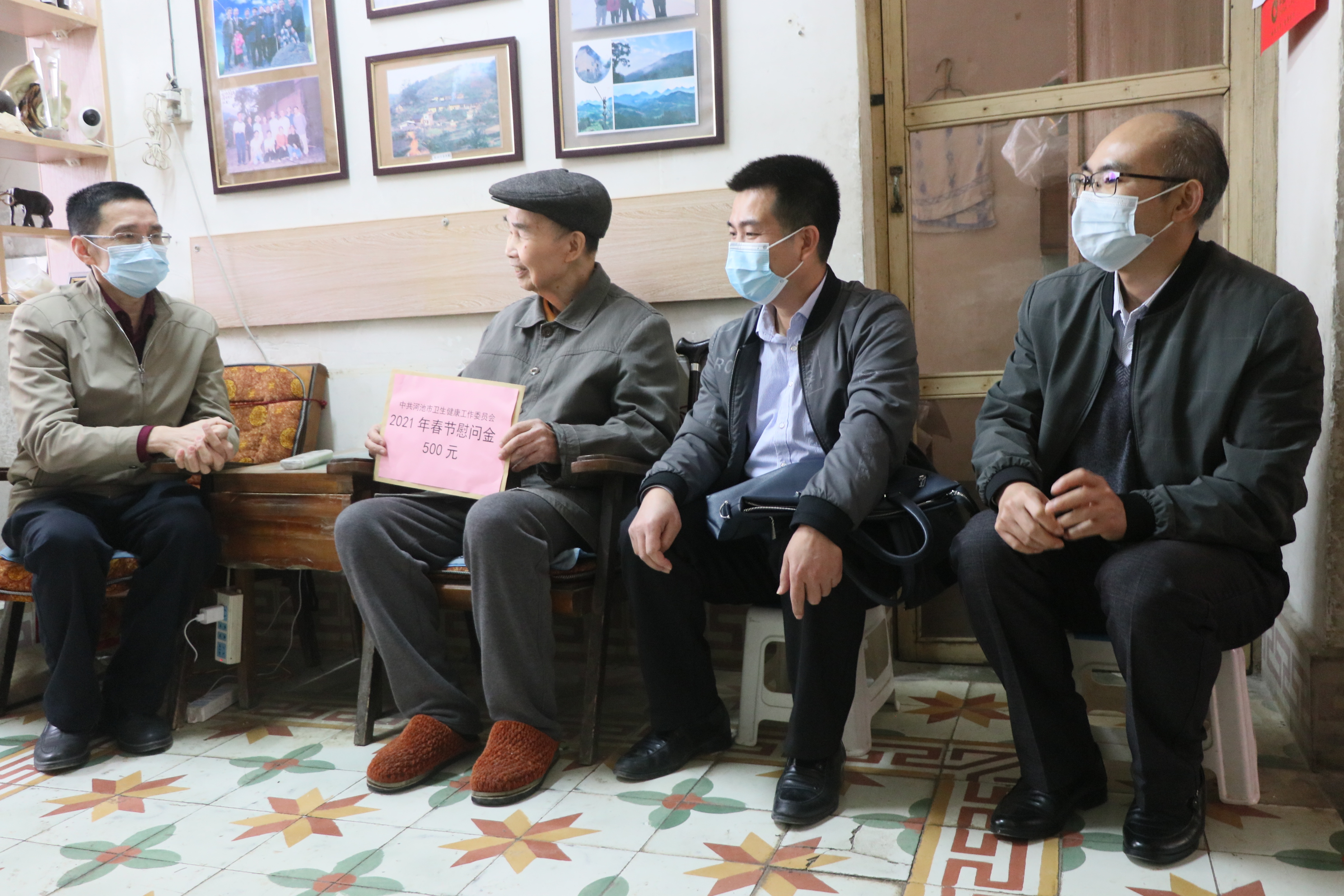2月4日上午,河池市卫生健康委党组成员、副主任蓝如料走访慰问了我校3名老党员、老专家,为他们送去节前的问候和党组织的关怀。学校党总支书记、校长陈朝亮陪同慰问。