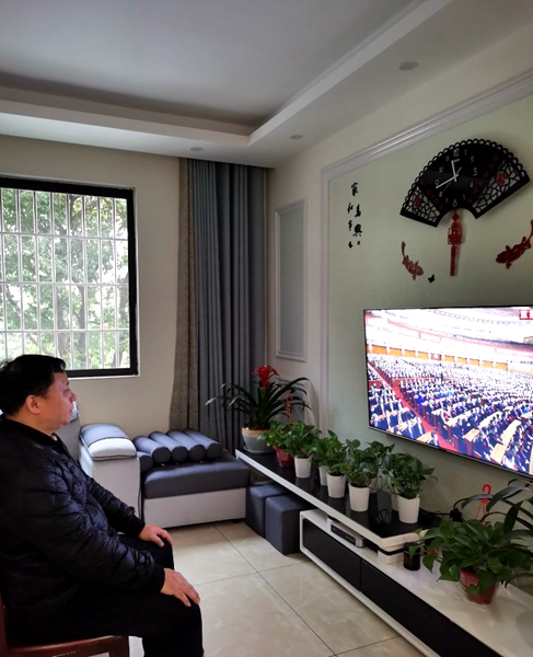 河池市卫生学校教师在家观看全国脱贫攻坚总结表彰大会